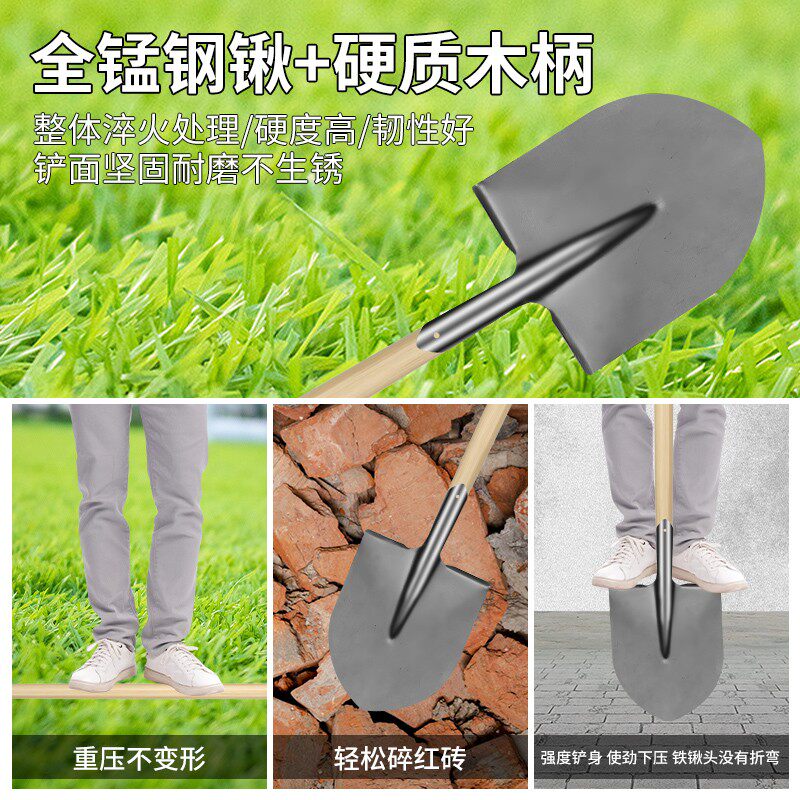 加厚大铁锹锰钢铁锨农用挖土种花尖方平头锹户外铲子园林工具园艺