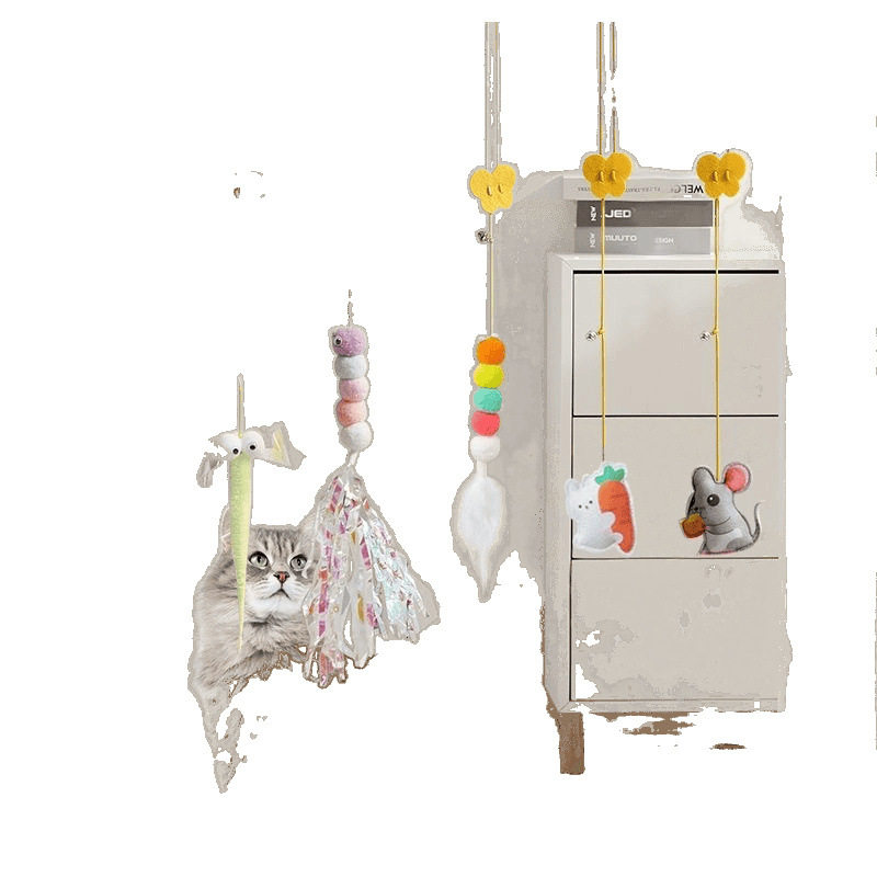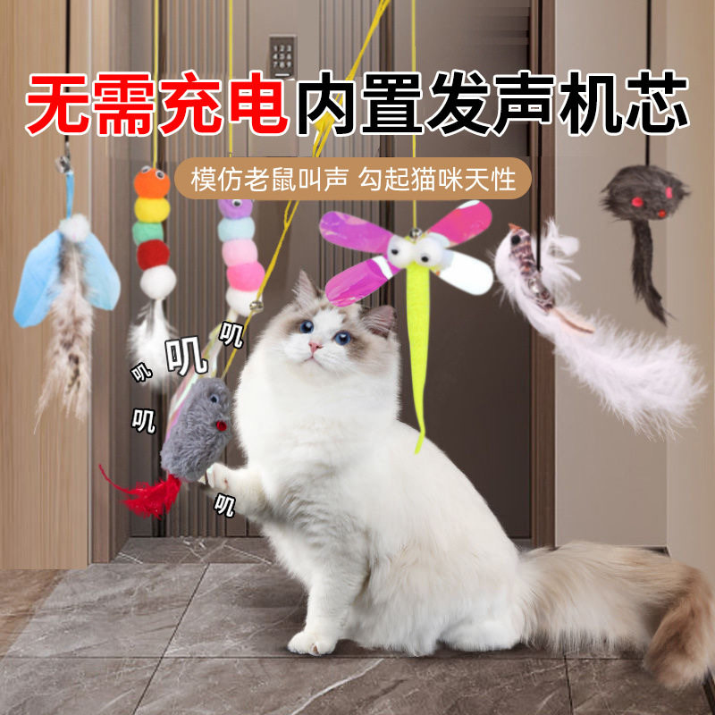 新款猫玩具自嗨解闷荡秋千挂门弹力绳悬挂式逗猫棒叫叫鼠猫咪用品
