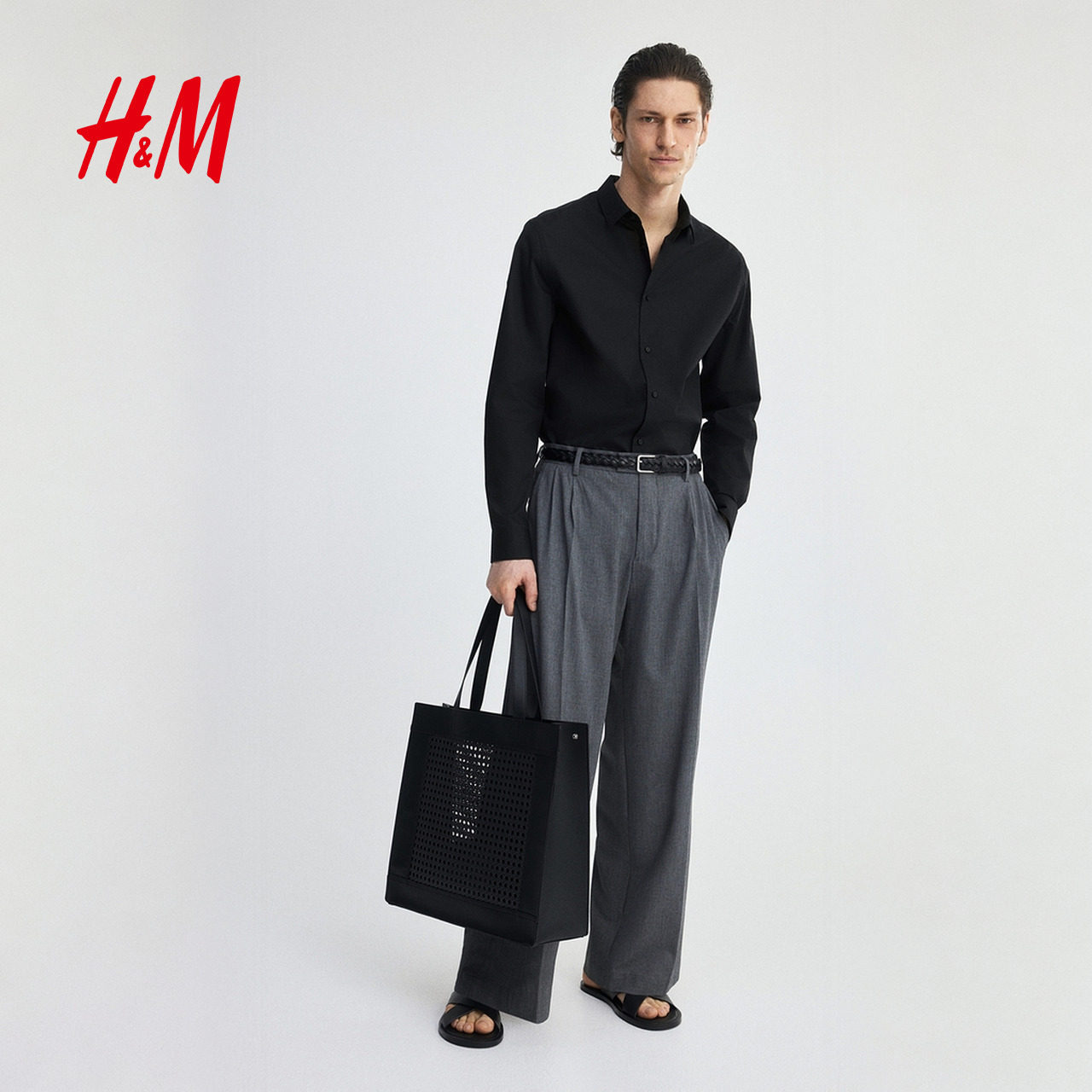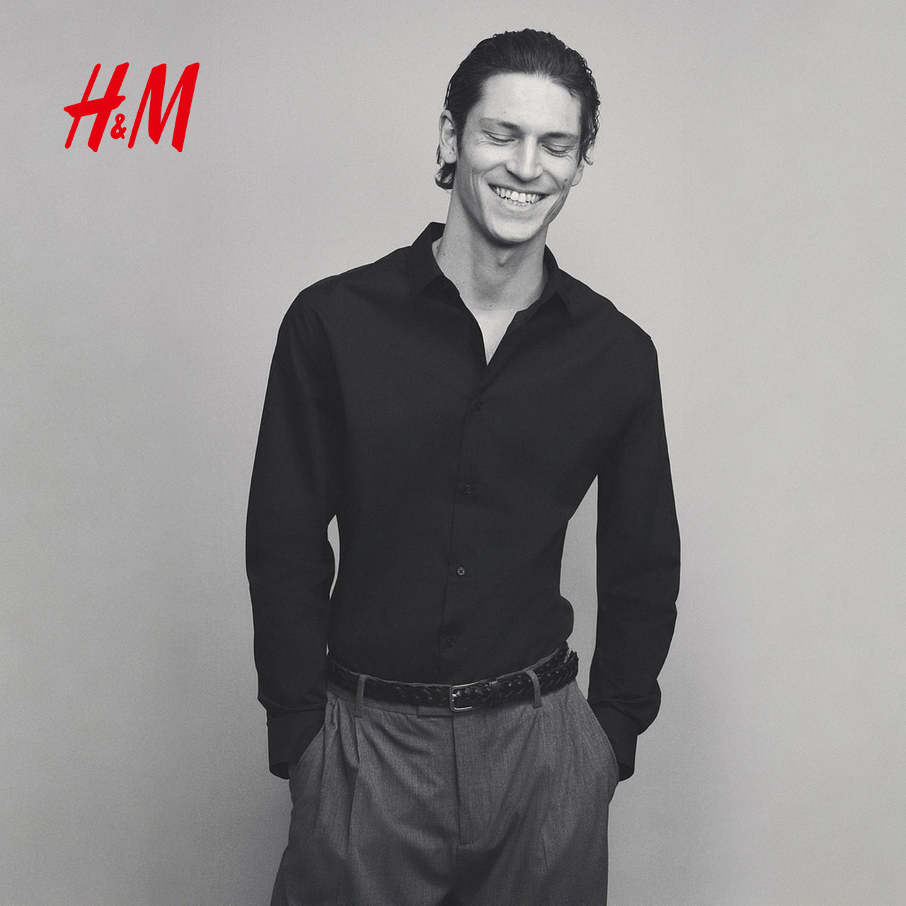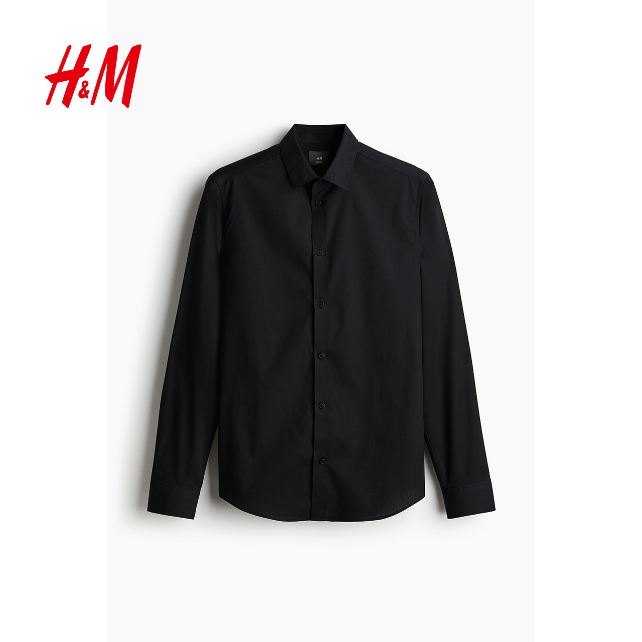 HM男装衬衫冬季商务通勤休闲合身衬衣易熨烫翻领长袖上衣1242812
