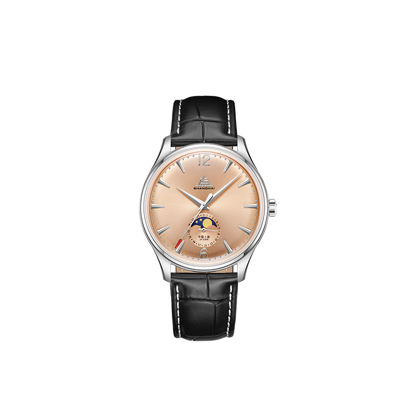 上海手表男款致敬创历者三文鱼月相自动上链商务机械表