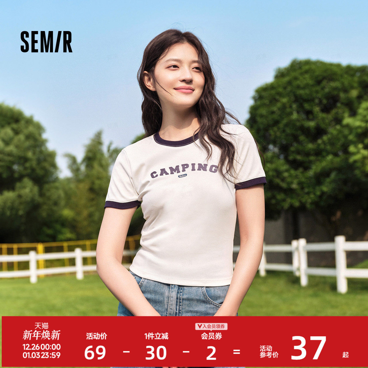 森马短袖T恤女短款正肩撞色复古风2025夏季修身字母上衣个性体恤