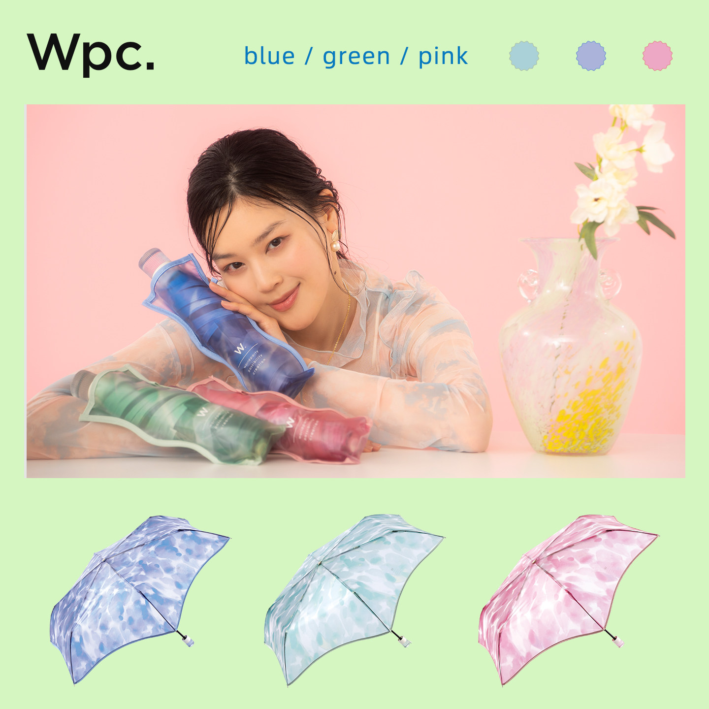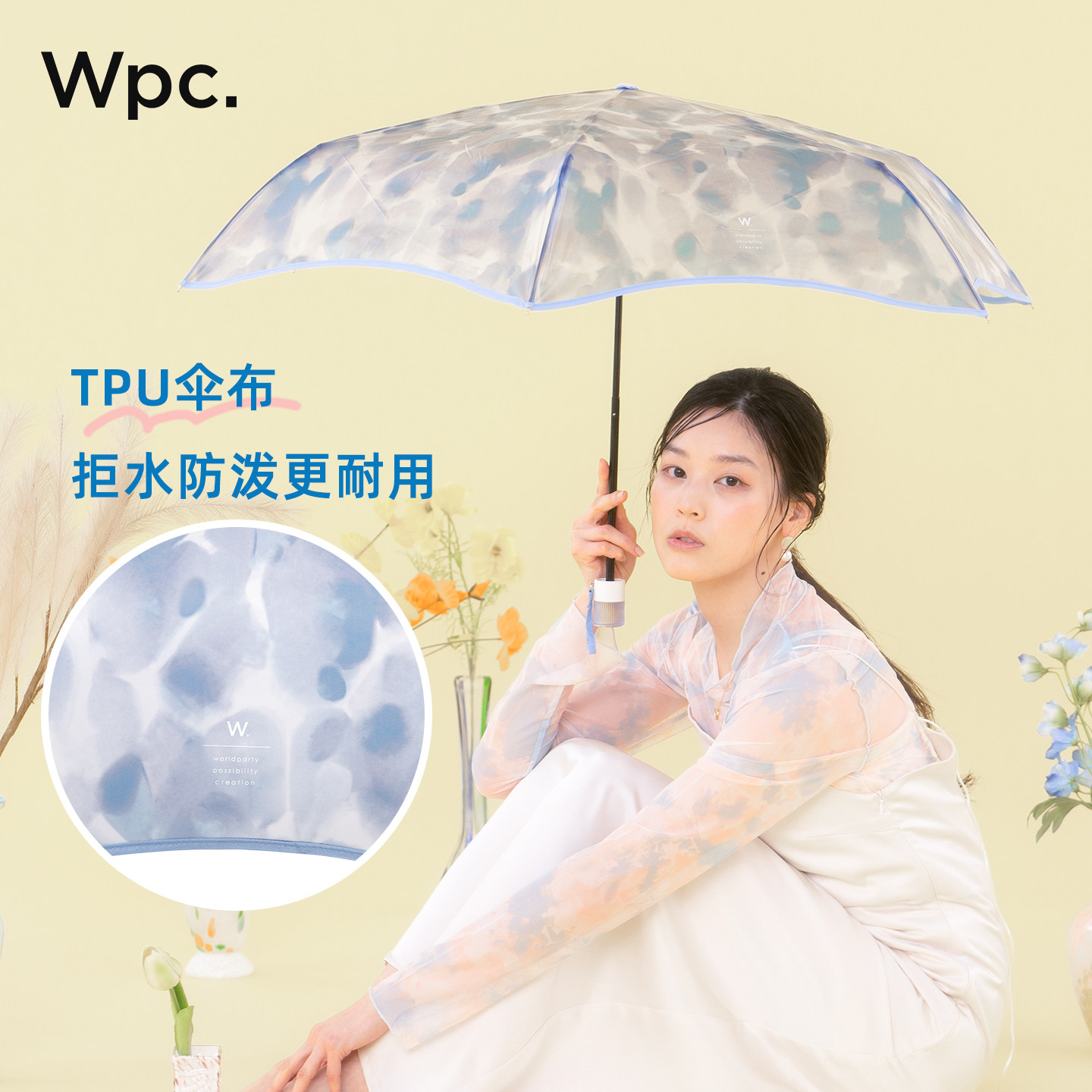wpc透明雨伞手动超轻小巧便携三折伞透明印花高颜值折叠雨伞女生