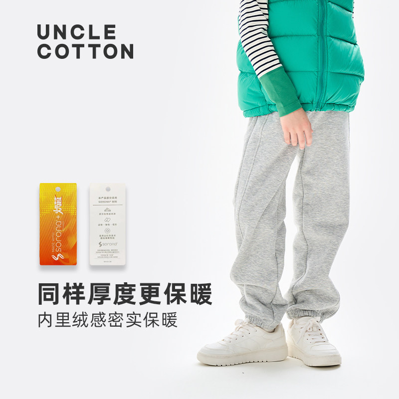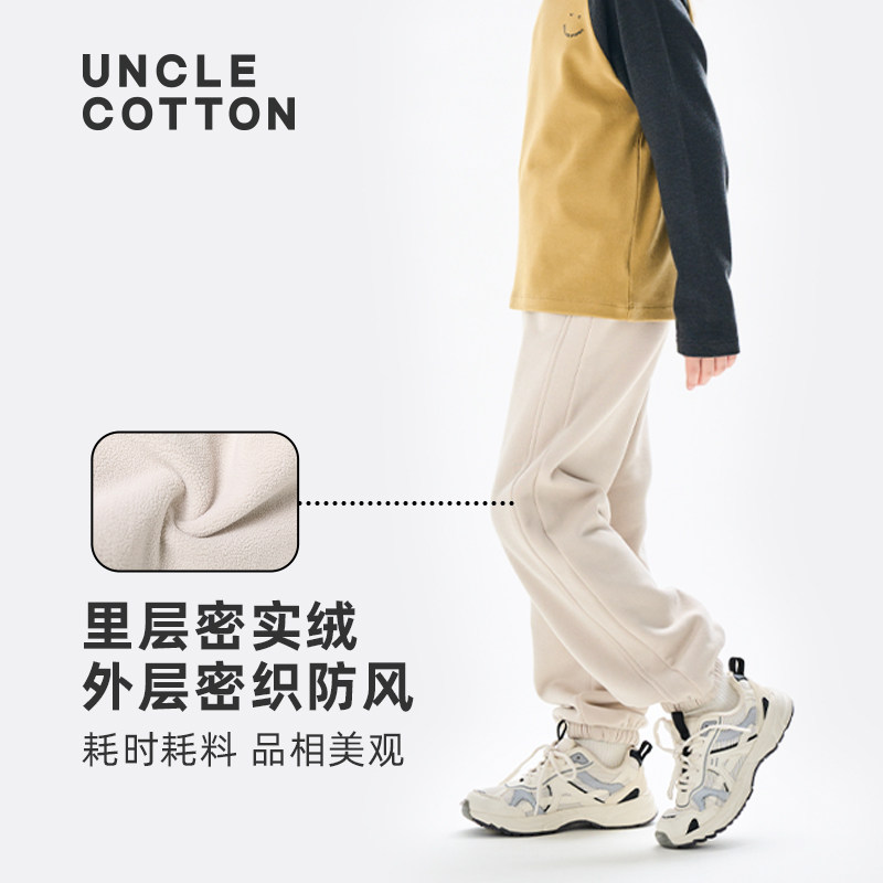 棉叔叔中大童保暖校服裤加绒收脚口卫裤结构款帅气裤子冬季亲子款