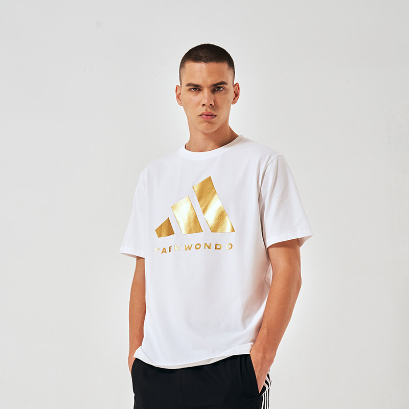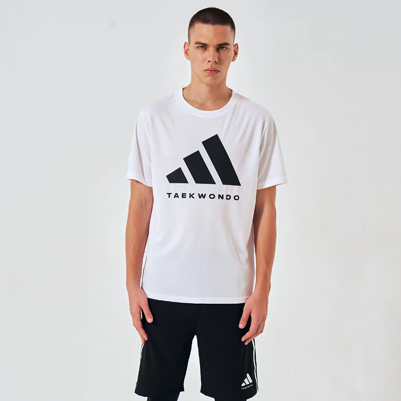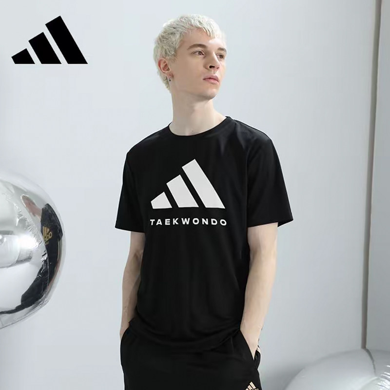 Adidas阿迪达斯运动T恤男蓝白夏季短袖速干衣女棉款 男女同款