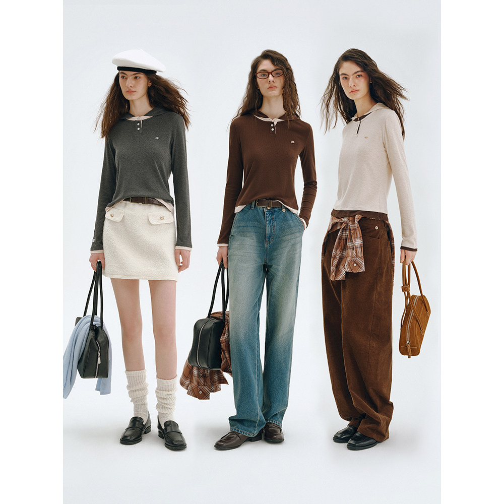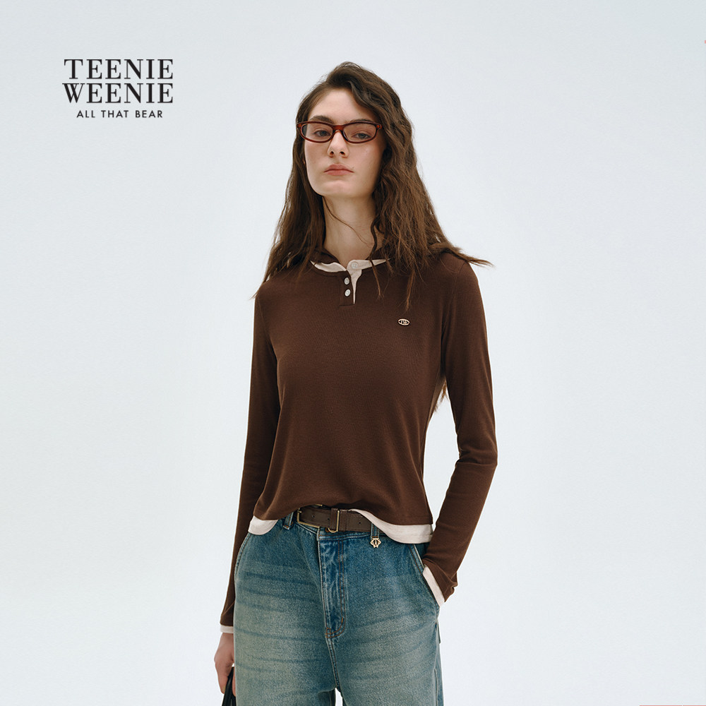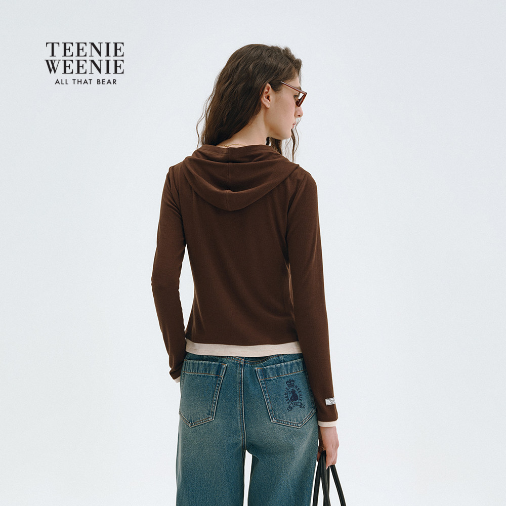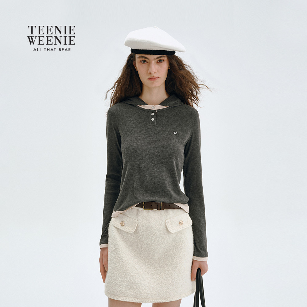 TeenieWeenie小熊女装T恤2025冬季新款简约日常通勤休闲连帽上衣