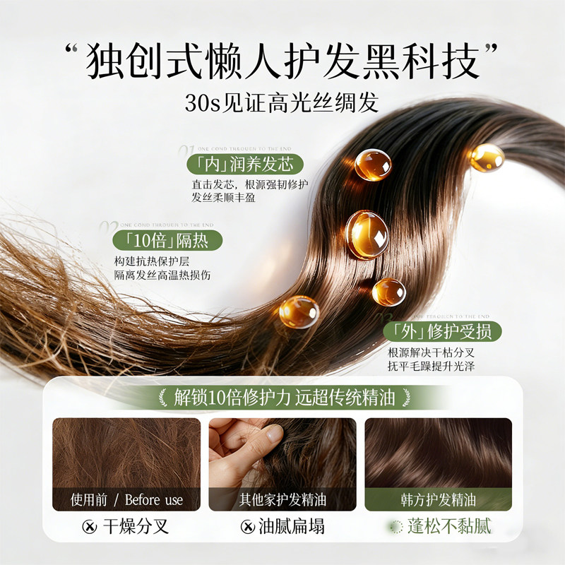 KIMTRUE且初护发精油自然香氛改善防毛躁柔顺护理轻盈柔顺
