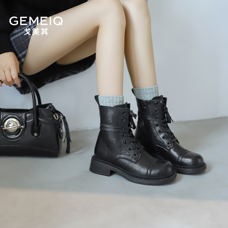 戈美其厚底马丁靴女款舒适新款春季英伦风复古增高机车短靴瘦瘦靴