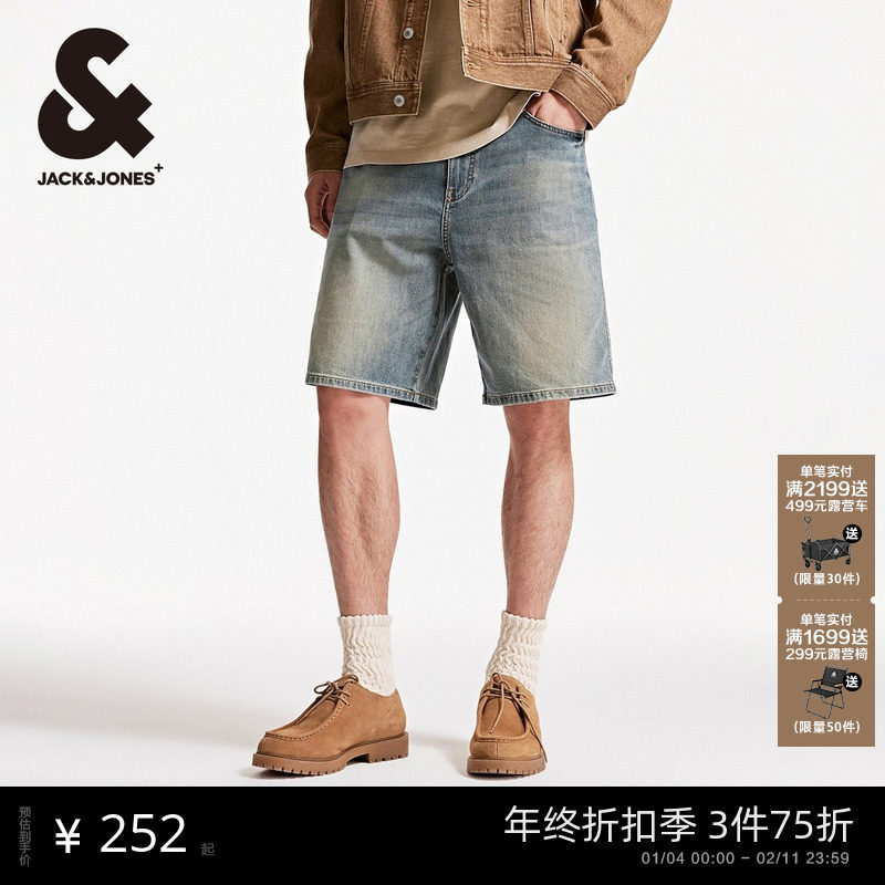 杰克琼斯秋季新款潮酷百搭休闲男宽松水洗猫须牛仔短裤子男装