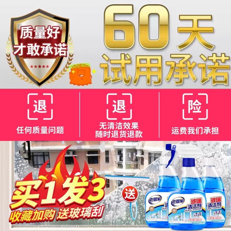 老管家擦玻璃水清洁剂家用擦窗清洗浴室窗户强力去污除垢专用神器