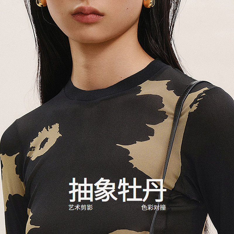 【商场同款/CNY系列】LESS2026春新圆领修身皮肤衣T恤女2Q1113220
