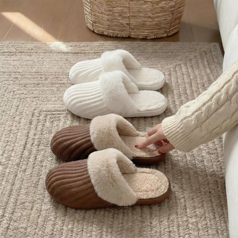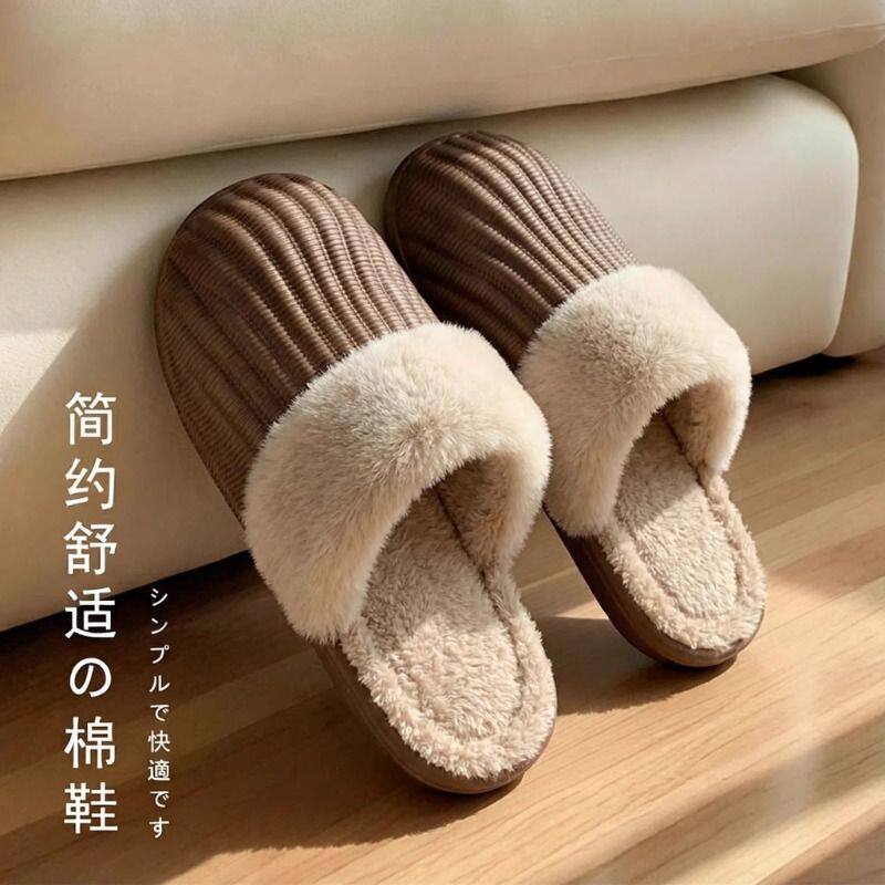 红豆踩屎感棉拖鞋女士秋冬季室内家居2025新款毛绒保暖情侣棉拖男