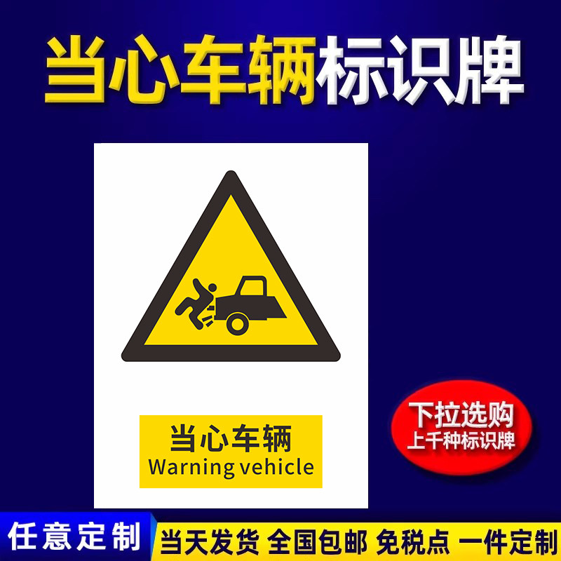 当心车辆安全标识牌警示提示指示标志消防标牌标签贴纸工地施工标语生产车间管理制度仓库禁止吸烟标识贴定做