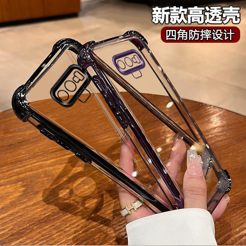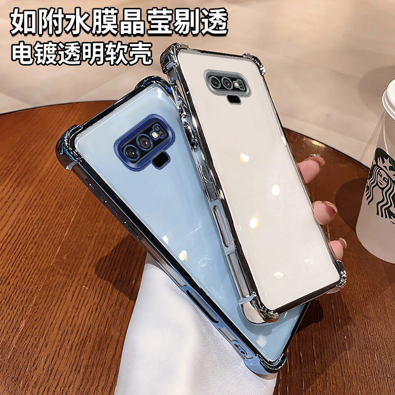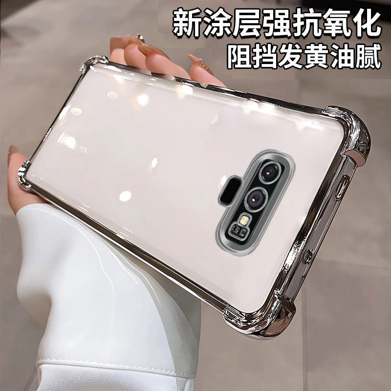 三星note9手机壳新款四角气囊硅胶防摔时尚镜头全包软壳适用三星note9高级感奢华强抗氧化简约电镀透明手机壳