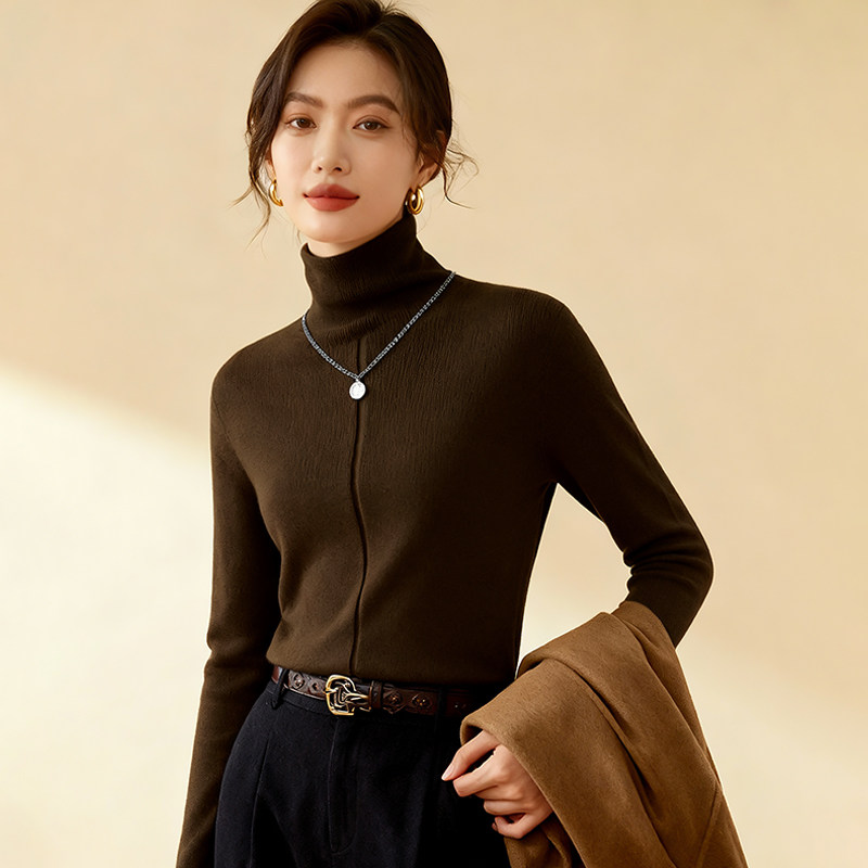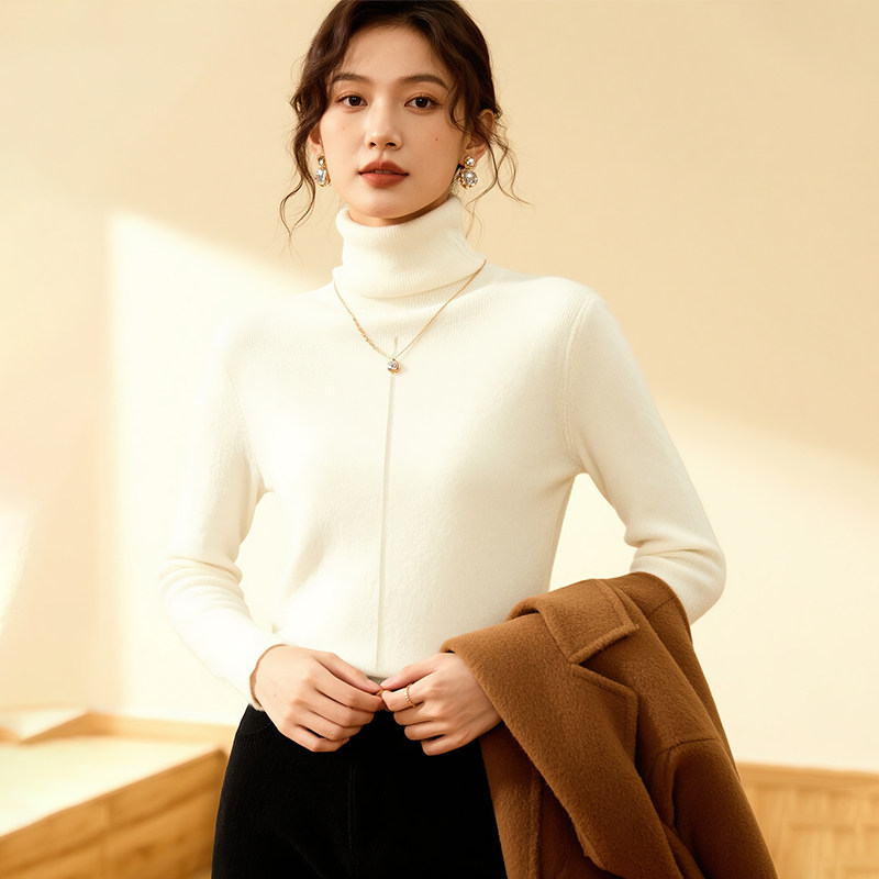 一线成衣无缝女半高领套头打底衫秋冬内搭毛衣修身长袖羊毛针织衫