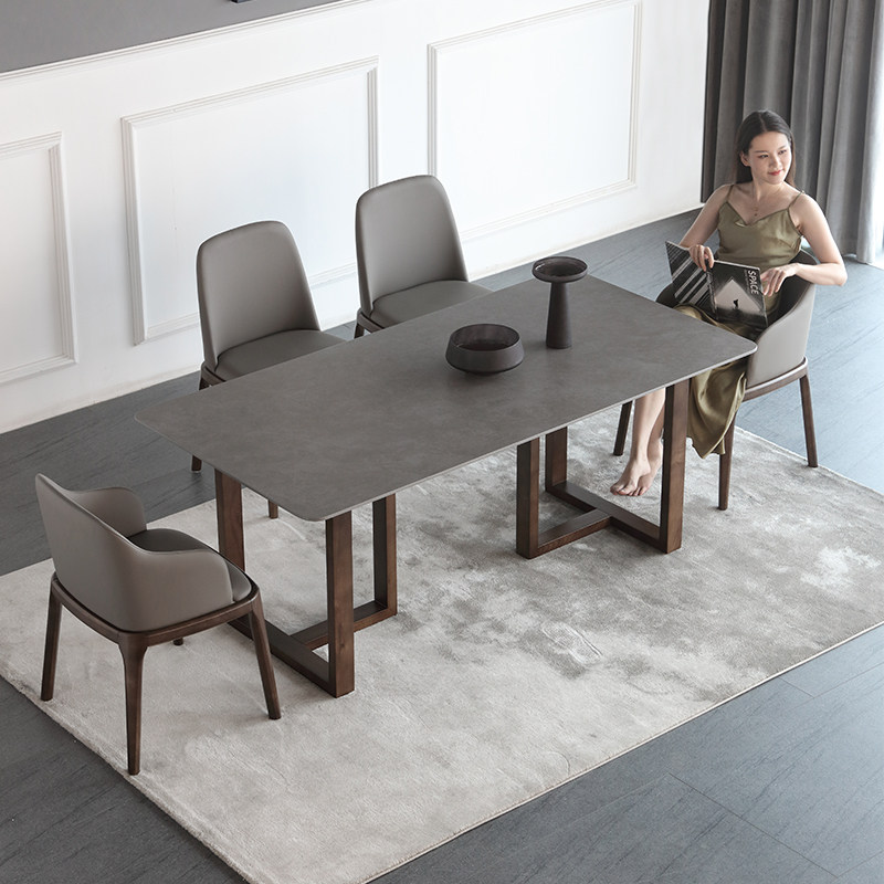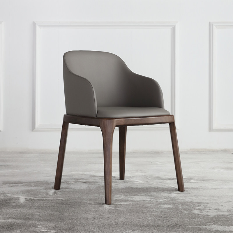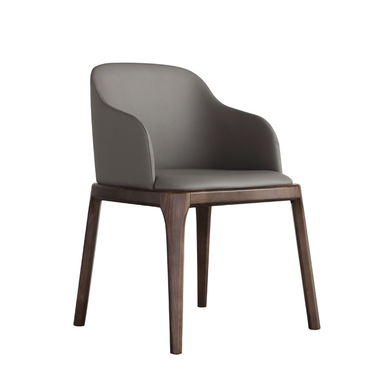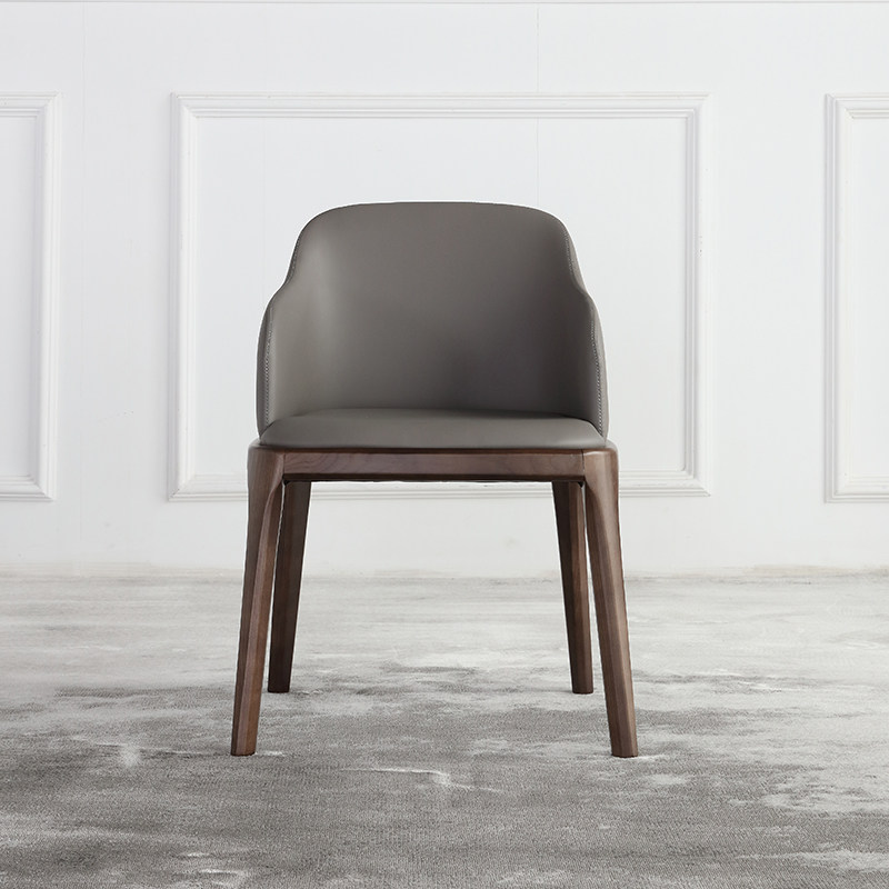 轻奢侘寂风餐椅皮软包设计师现代弯曲木咖啡厅实木椅子家用书房椅