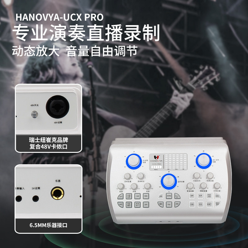 汉诺威亚旗舰店白色声卡手机直播外置声卡套装ZRDR无线话筒设备