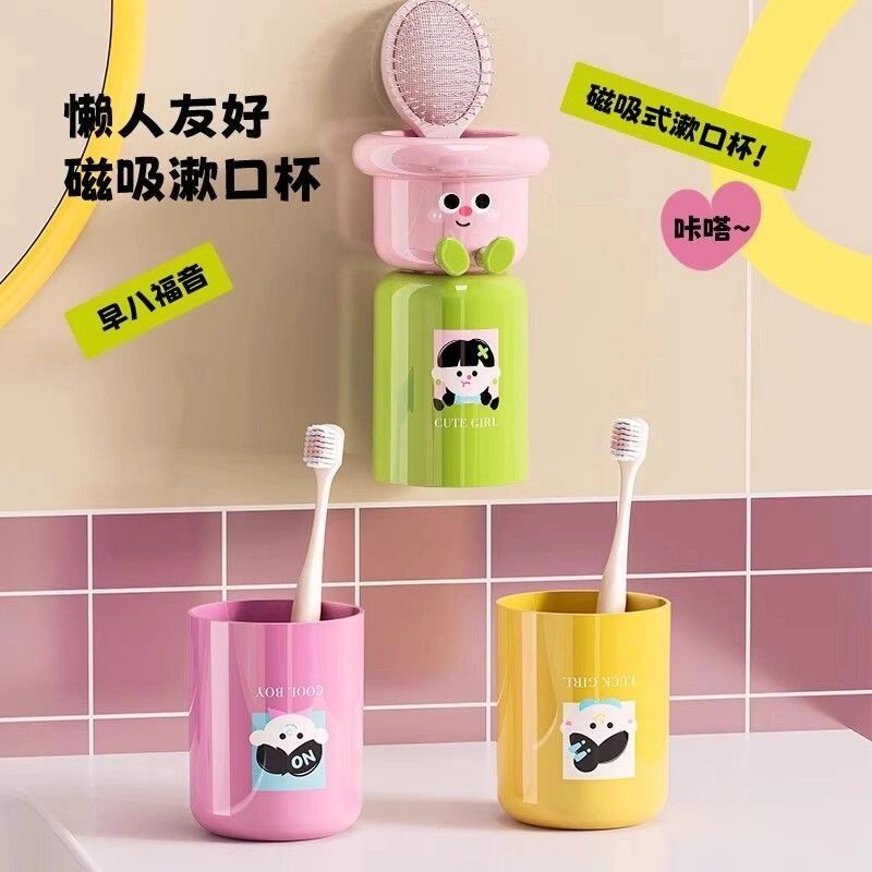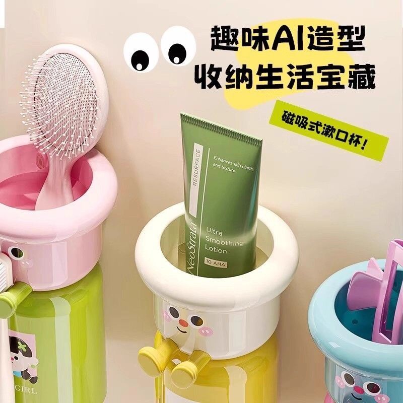 2026新款电动牙刷置物架壁挂式免打孔多巴胺磁吸漱口杯子收纳架