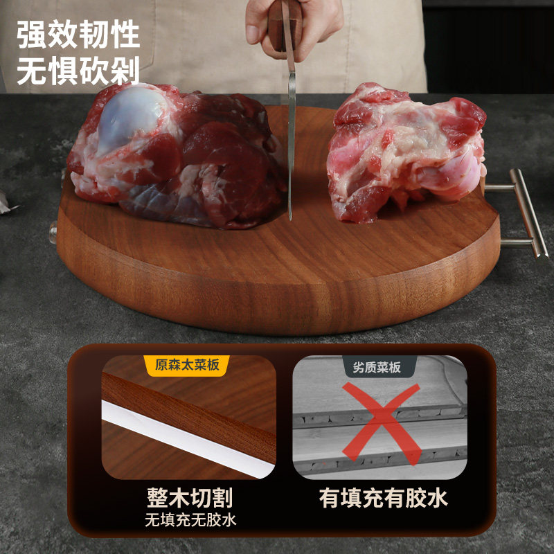 原森太非洲楝木菜板家用防霉抗菌切菜板双面圆形实木整木砧板案板