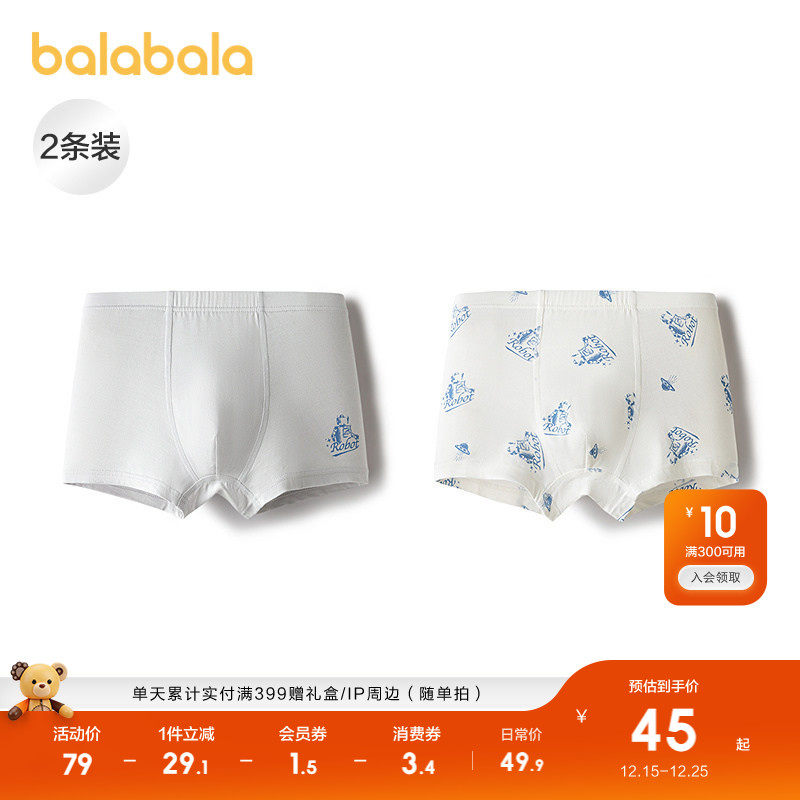 【balaOne】巴拉巴拉儿童内裤棉男童不夹pp抗菌裆四角短裤三条装