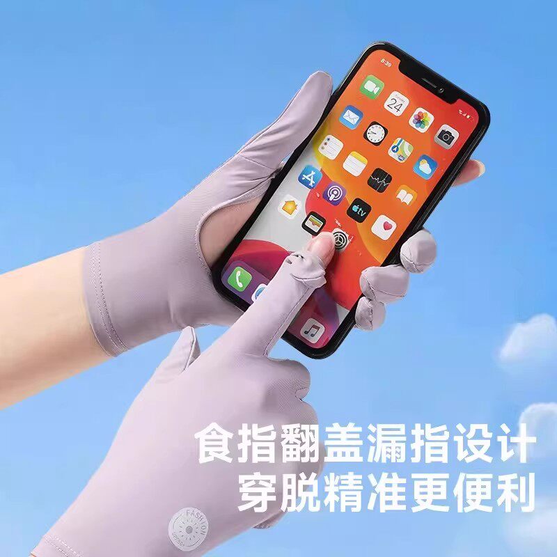 冰丝凉感防晒手套女短款轻薄防滑透气防紫外线开车骑行手袖套骑车