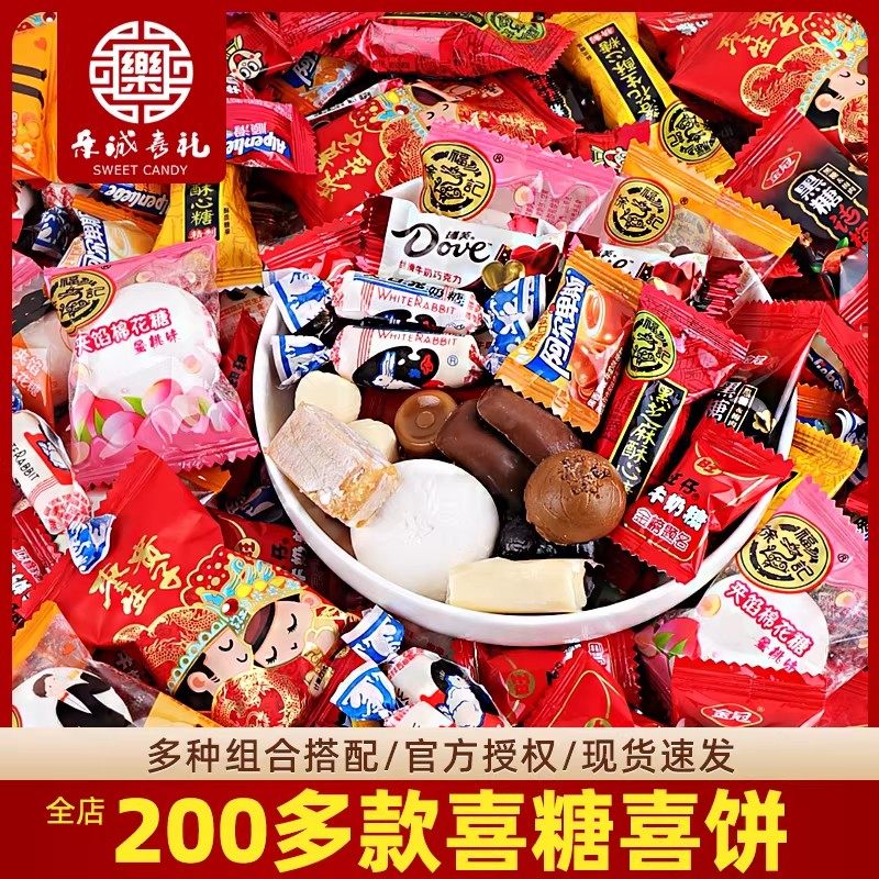 结婚喜糖婚庆糖果散装批发订婚满月周岁巧克力水果棉花糖喜枣婚糖
