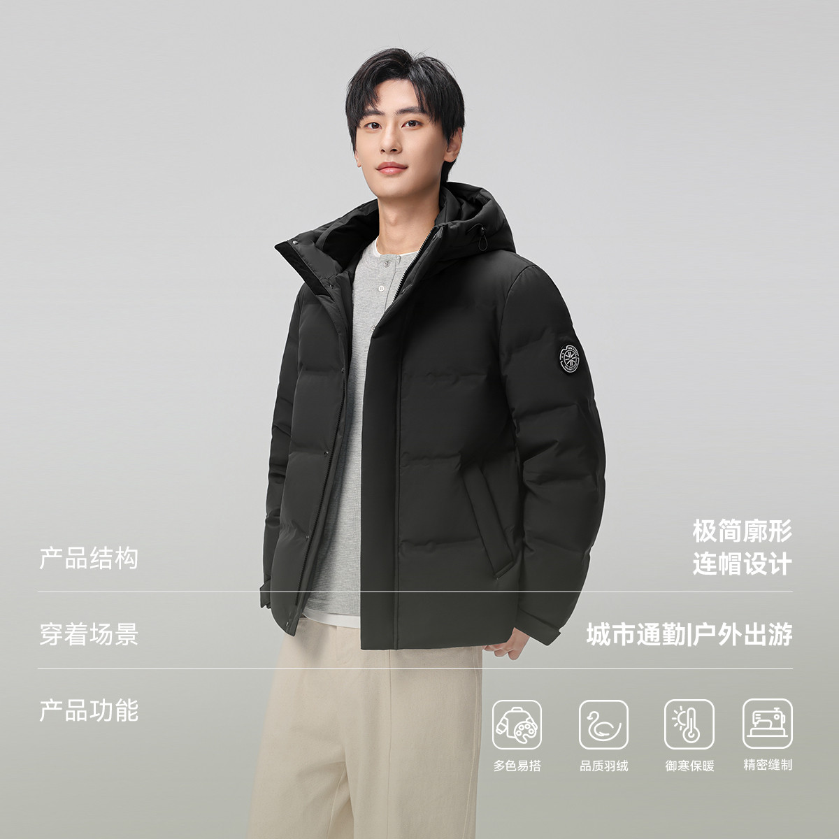 雪中飞2026男士短款经典连帽羽绒服大众休闲保暖外套舒适时尚