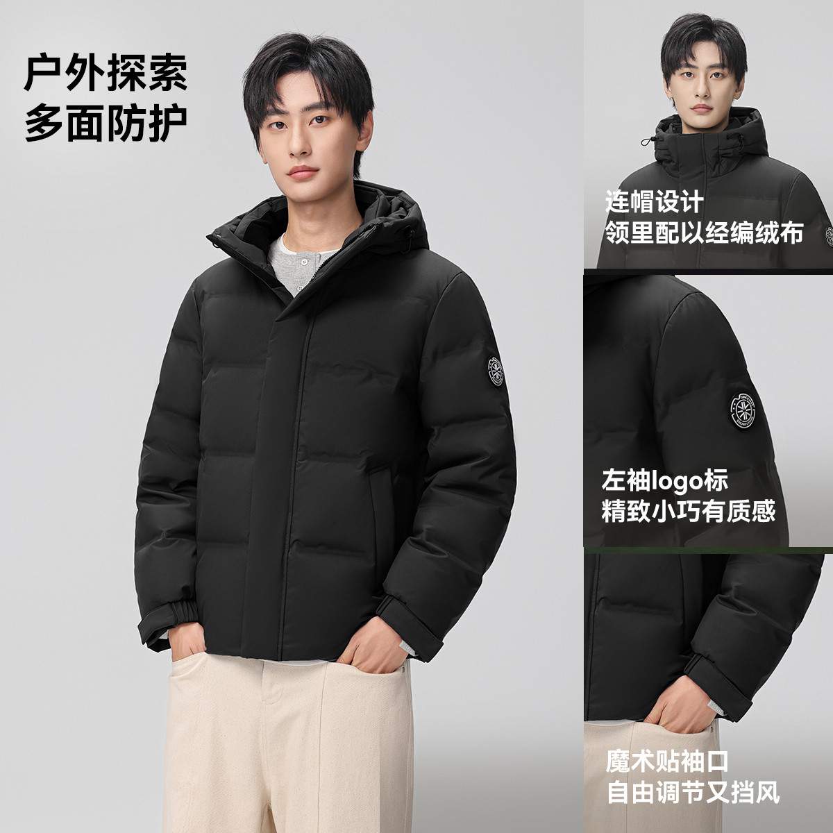 骆驼黑钻5 男装羽绒服防风拒水面包防寒服时尚连帽短款外套秋冬男