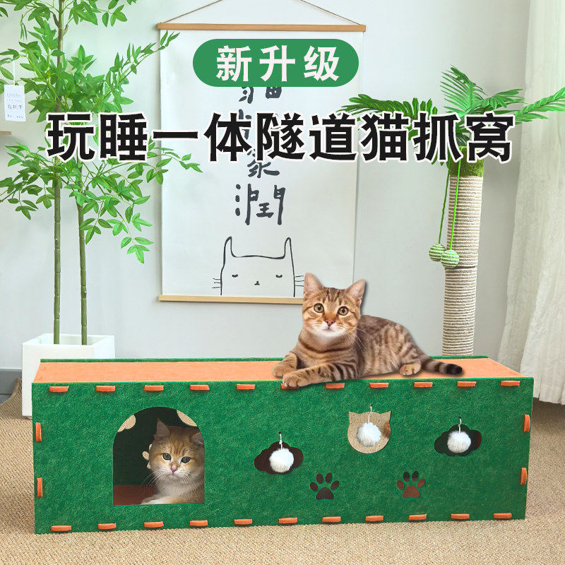 掏掏乐隧道猫窝猫抓板一体耐磨不掉屑加长超大号猫玩具双层猫房子