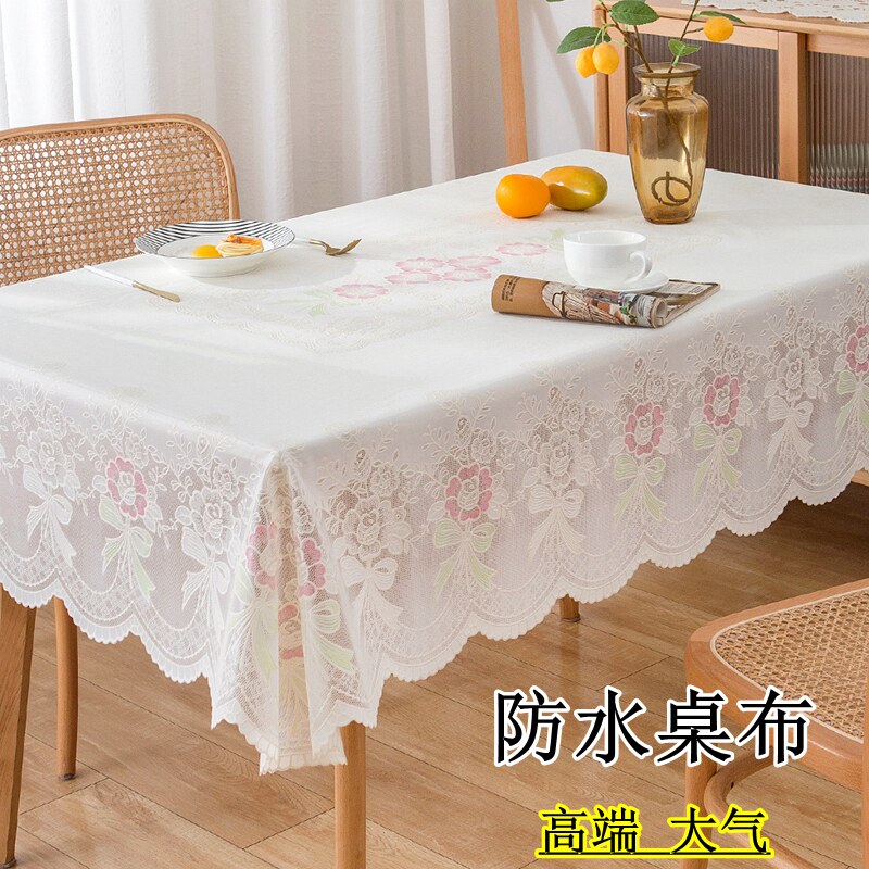 桌布防水防油免洗防烫长方形餐桌布塑料台布蕾丝轻奢高级感茶几布