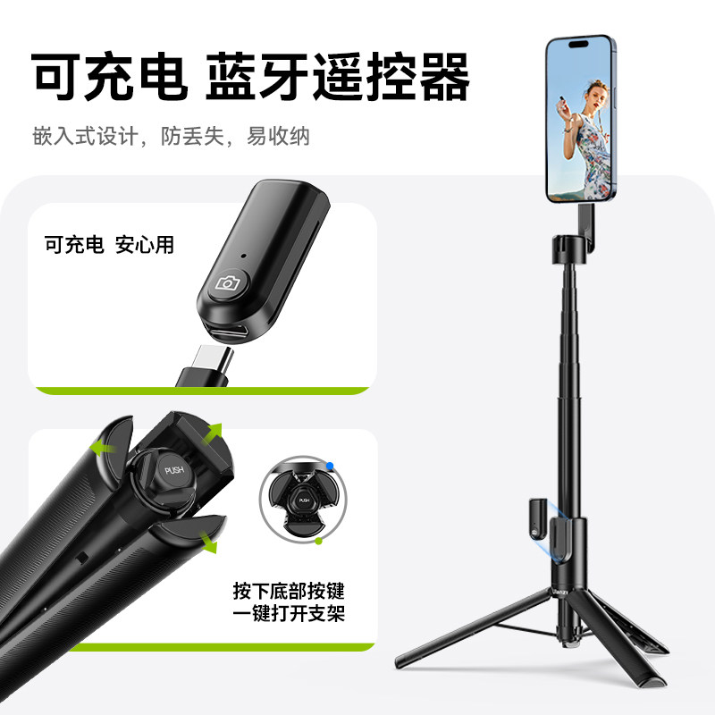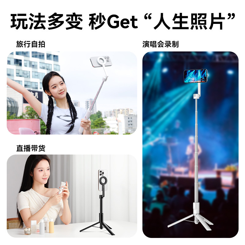 Ulanzi优篮子MG003磁吸支架自拍杆MagSafe支持苹果iPhone16手机专用拍照神器2025新款旅游便携蓝牙落地三脚架