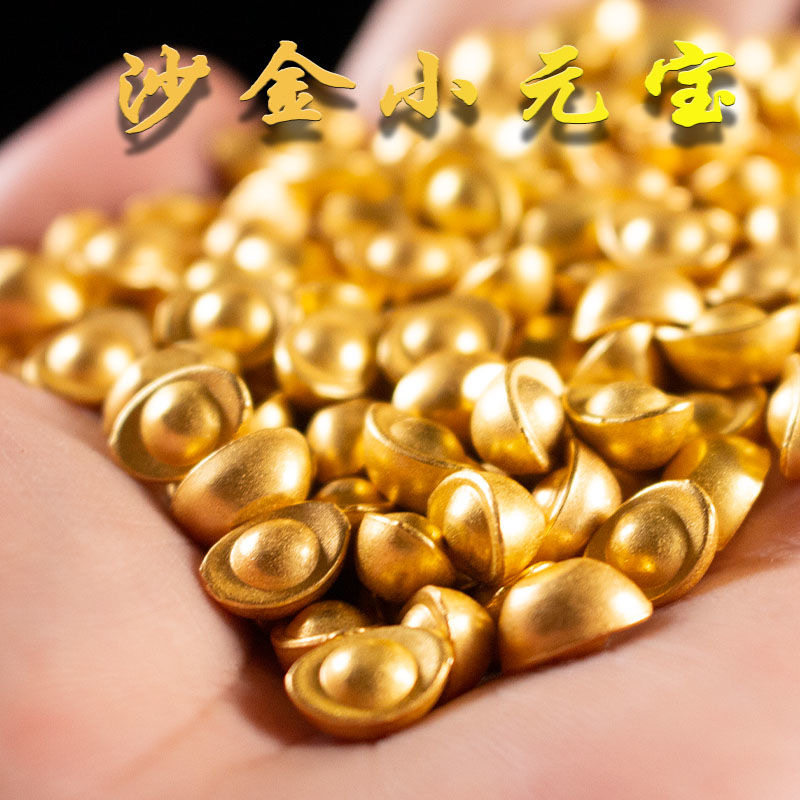 实心仿真金色元宝沙金装饰摆件手工diy配饰招财家居客厅桌面合金