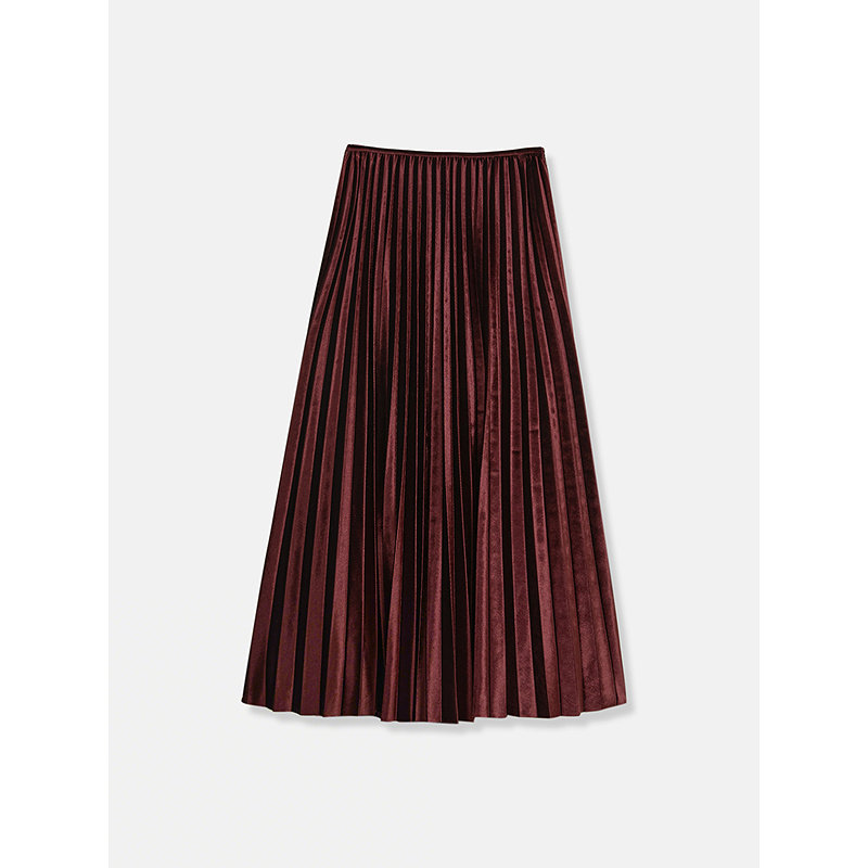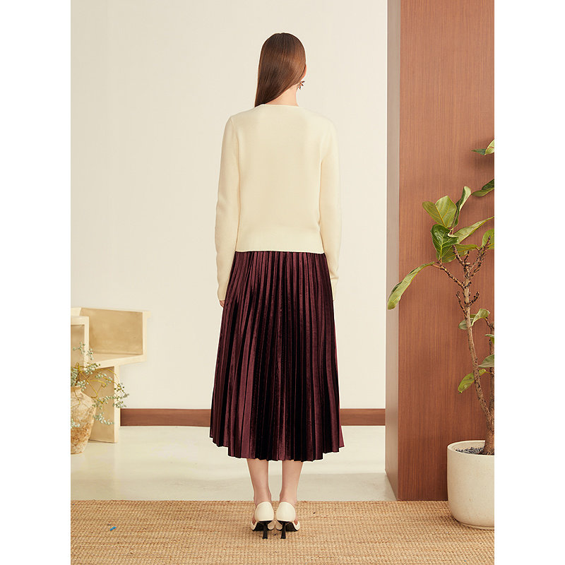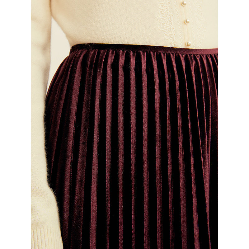 YINER音儿2025冬季新款法式优雅中长款高腰灵动丝绒百褶半身裙