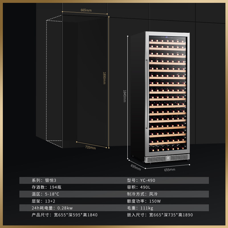 维佳德 CH-115大容量不锈钢恒温酒柜风冷无霜家用嵌入式高端酒柜
