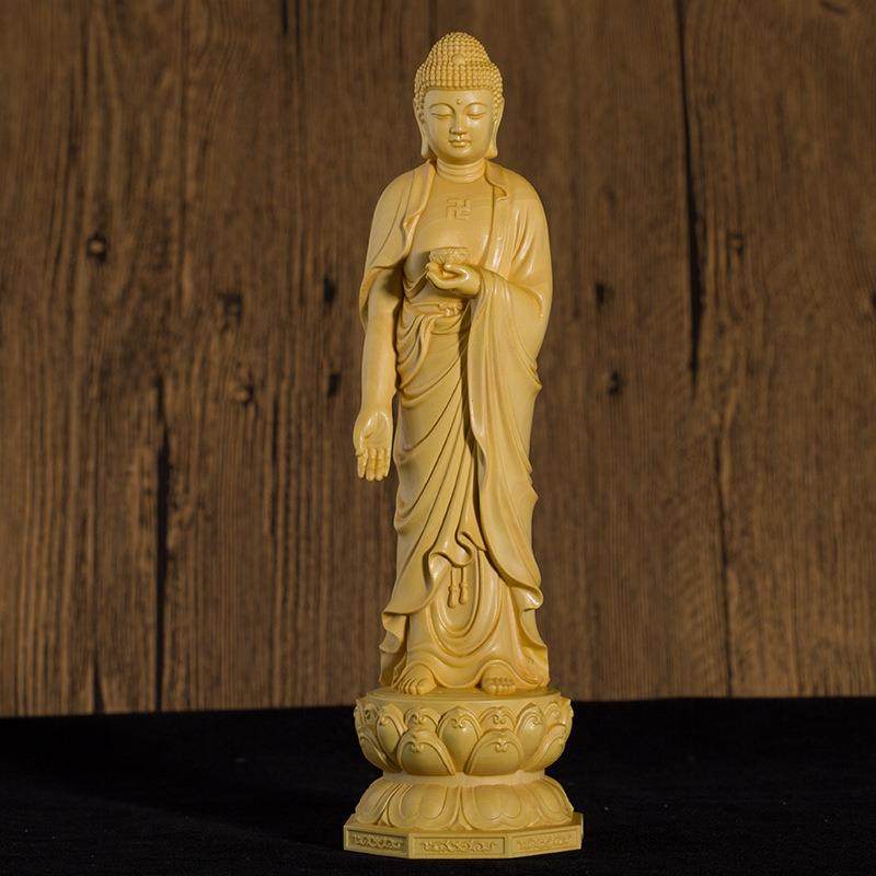黄杨木雕西方三圣阿弥陀如来观音菩萨大势至菩萨佛像文玩摆件