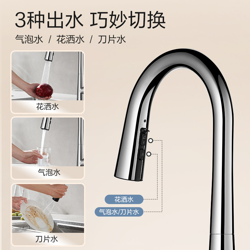 冷热抽拉 三功能出水 十级电镀 陶瓷阀芯