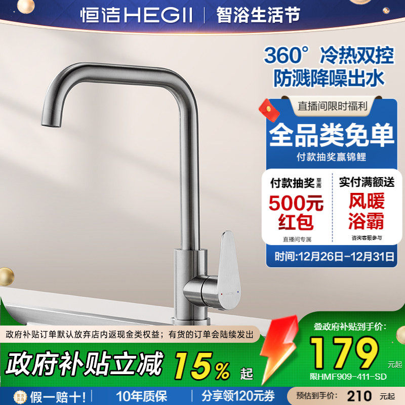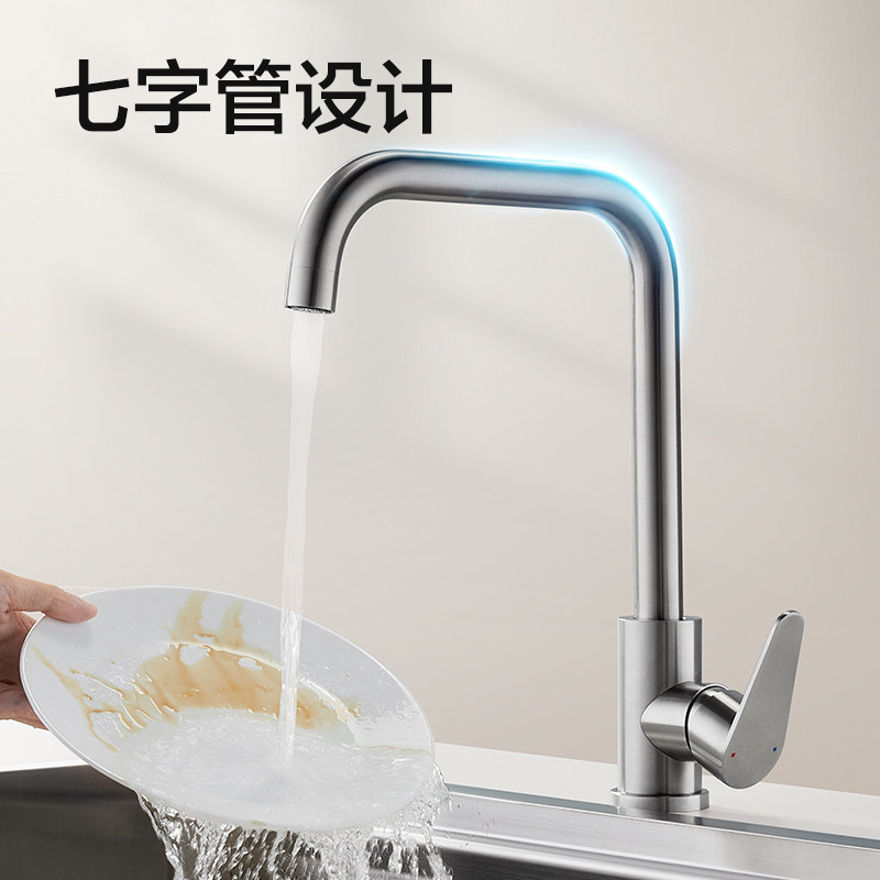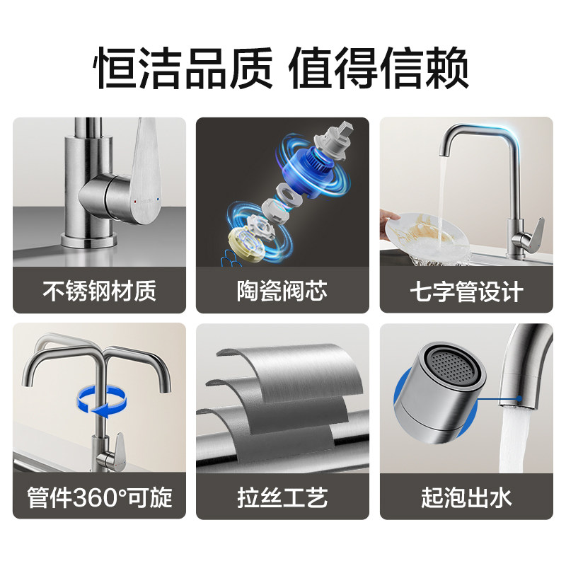 恒洁官方厨房龙头洗菜盆七字型水龙头不锈钢水槽冷热水池菜盆家用