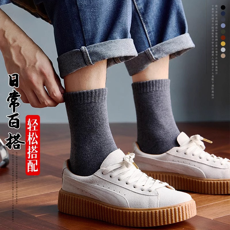 芬腾可安男士通勤商务中筒袜秋冬季男款防臭吸汗商务纯色袜子潮