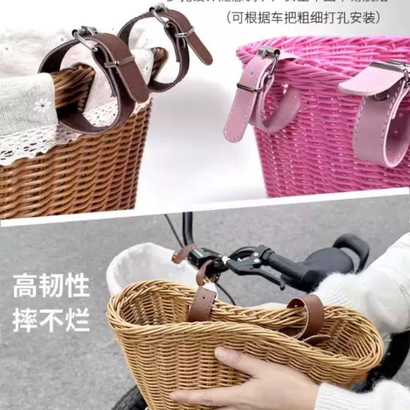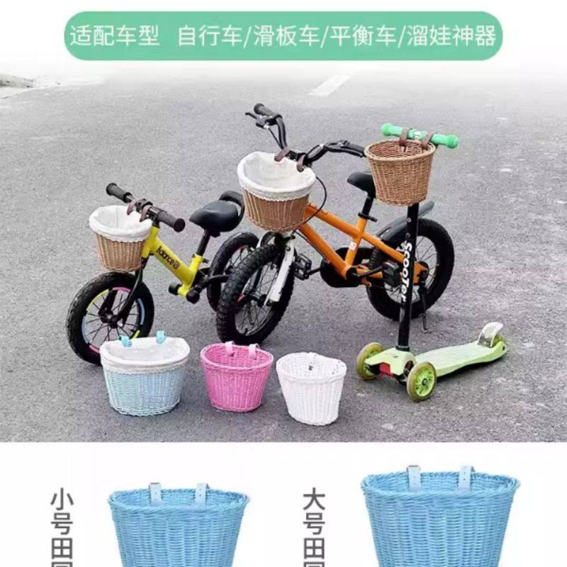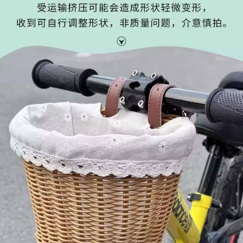 儿童自行车车篮复古藤编车筐平衡车编织前篮筐溜娃神器车篮子配件