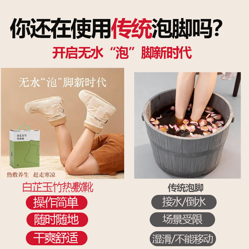 懒人无水泡脚热敷靴加热保暖靴懒人暖脚神器秋冬艾草艾灸热敷鞋