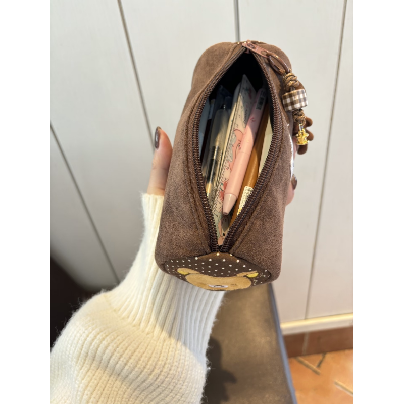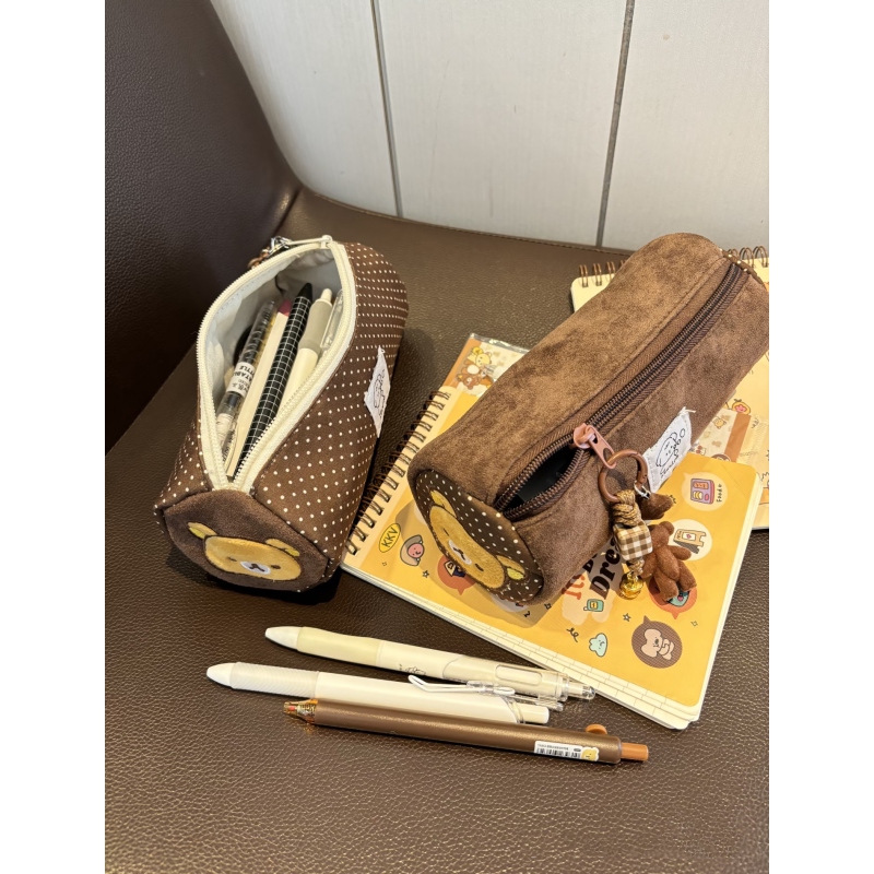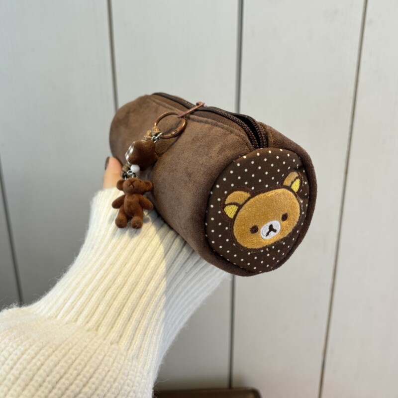 新款原创轻松熊圆筒笔袋学生卡通大容量文具盒初高中笔尺收纳袋