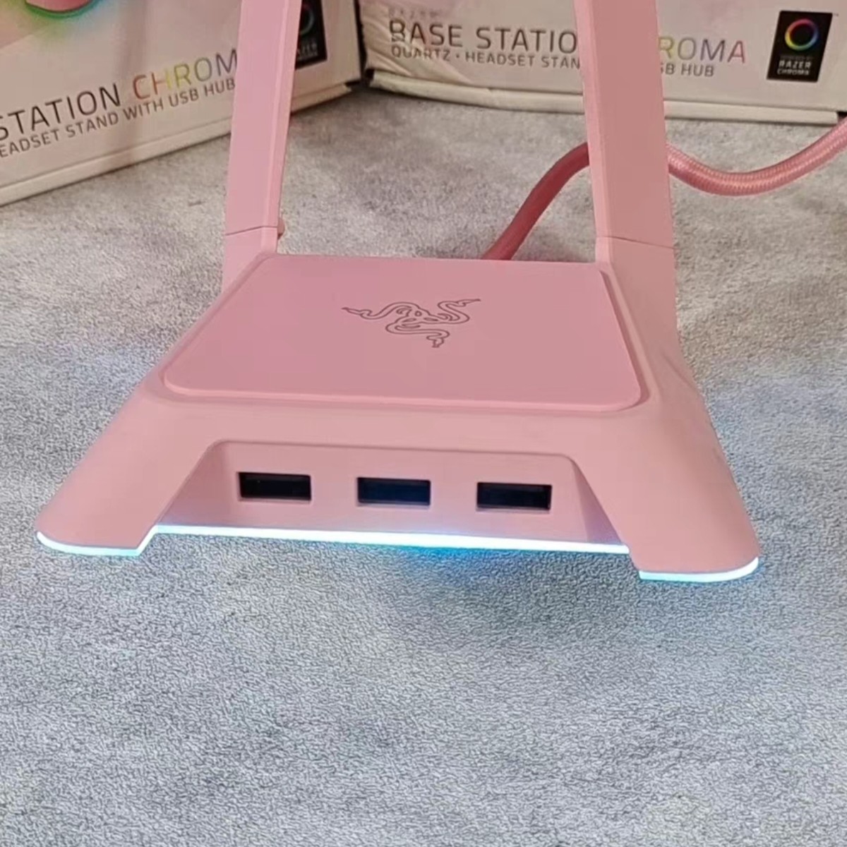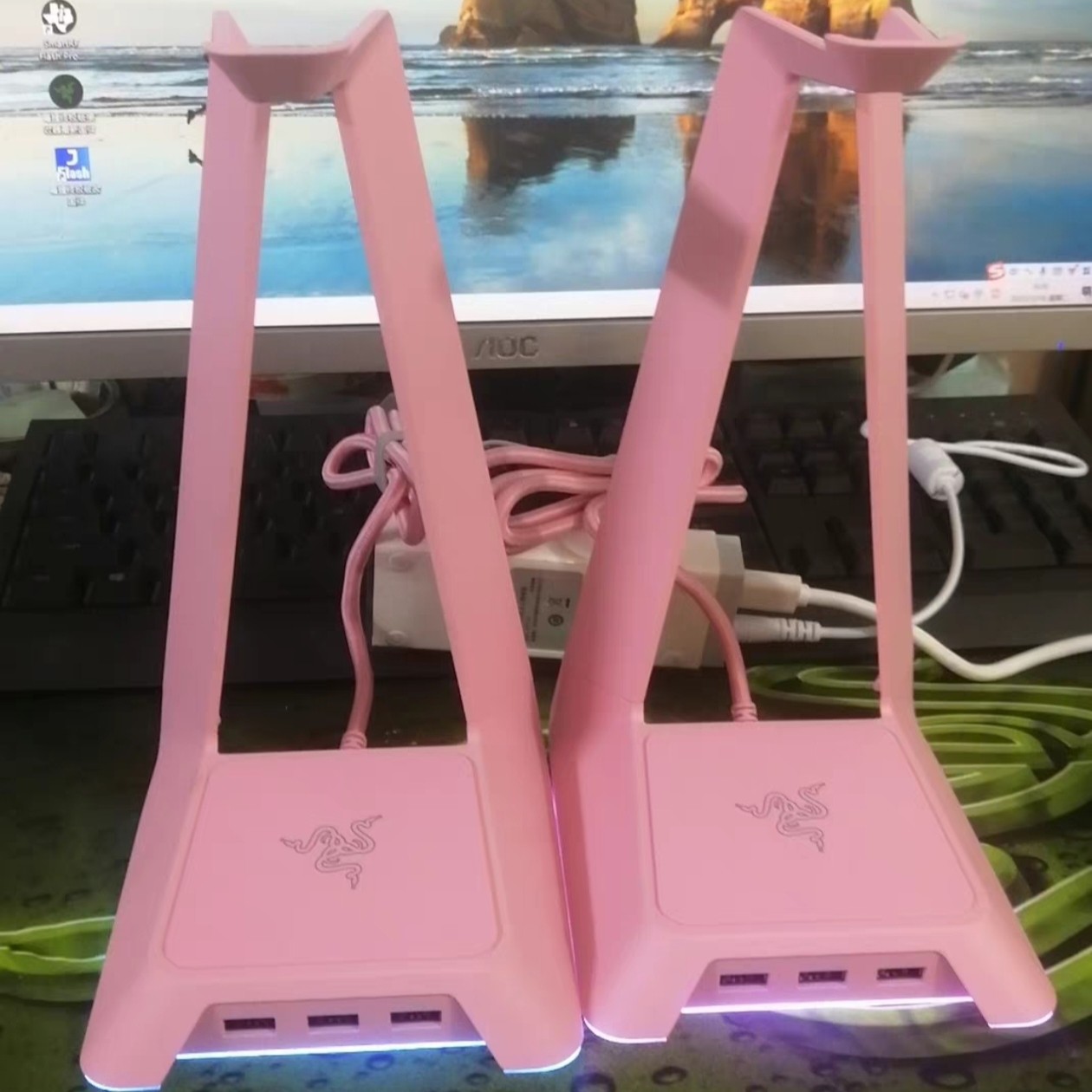 Razer雷蛇粉晶头戴式游戏耳机RGB幻彩神光同步桌搭设计支架挂架