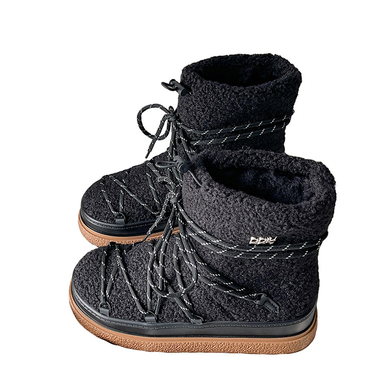15HZ的鲸厚底雪地靴女2025新款防滑棉鞋女一脚蹬冬季雪地棉女鞋子