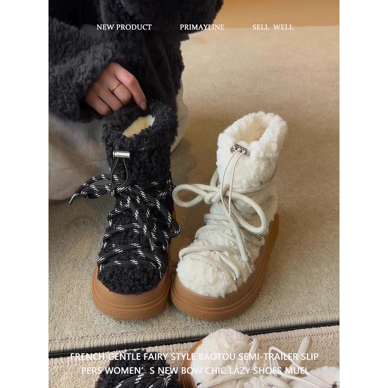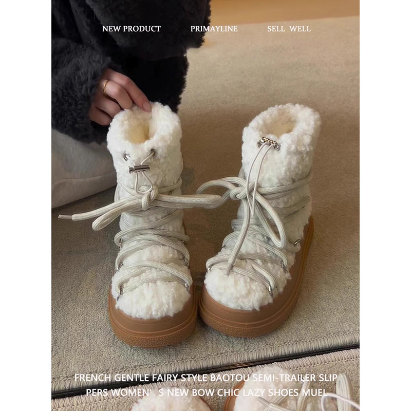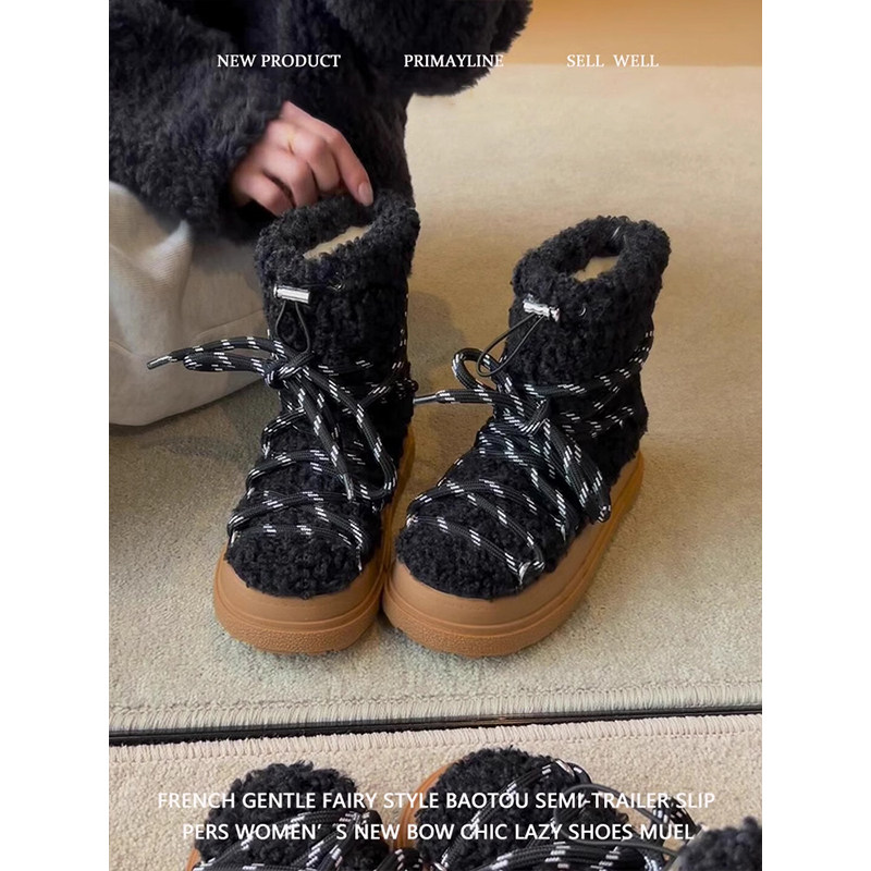 低帮厚底雪地靴女2025新款冬季懒人一脚蹬毛毛棉鞋加绒加厚女鞋子