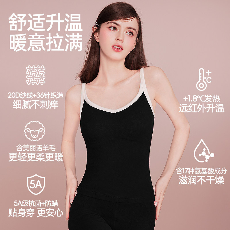 半练方领宽肩保暖背心女秋冬新款带胸垫吊带吸湿发热内搭显瘦打底