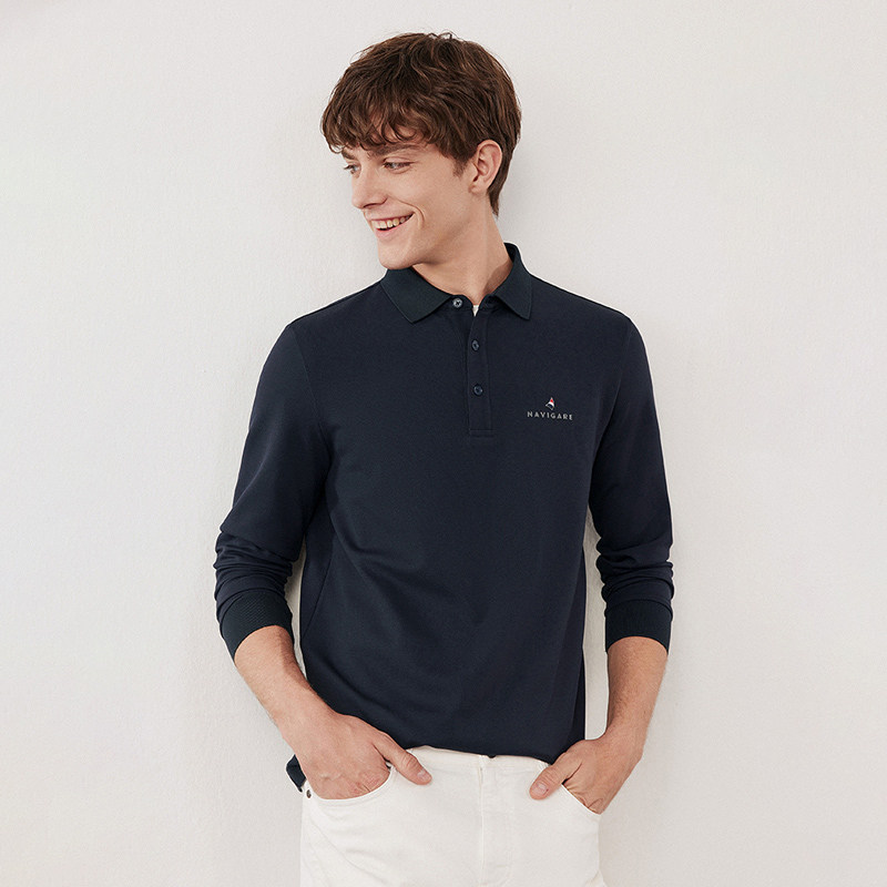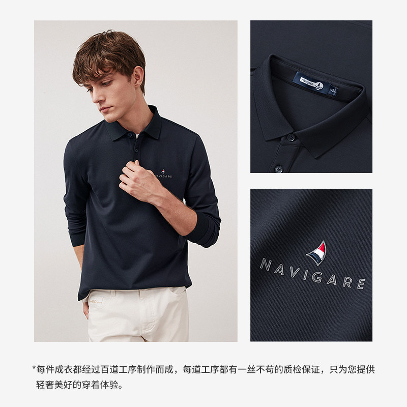 Navigare意大利小帆船秋季新款保罗polo衫男长袖休闲刺绣翻领T恤