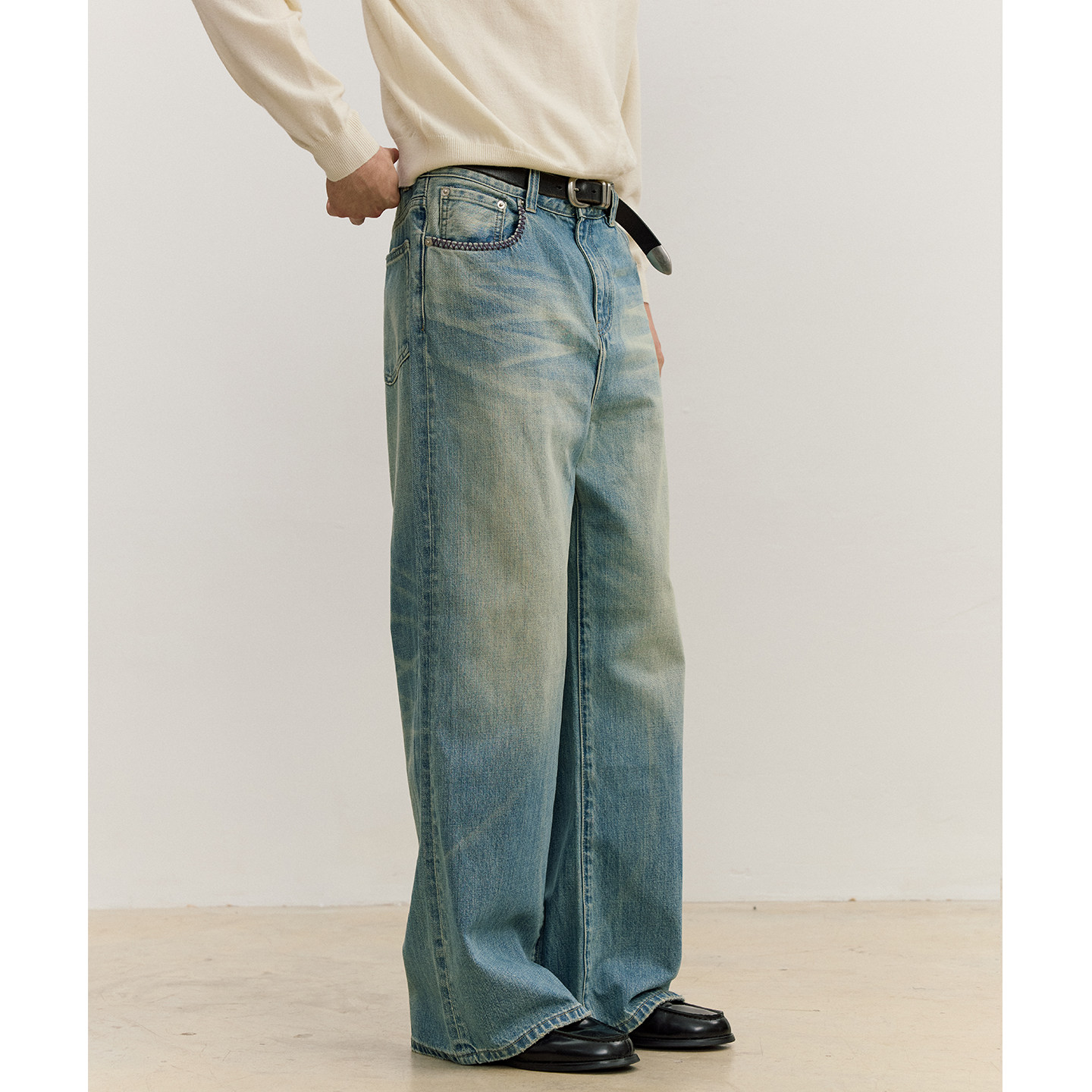 VMCL手缝线洗水A字直筒微阔cleanfit牛仔裤长款男25AW vermicelli