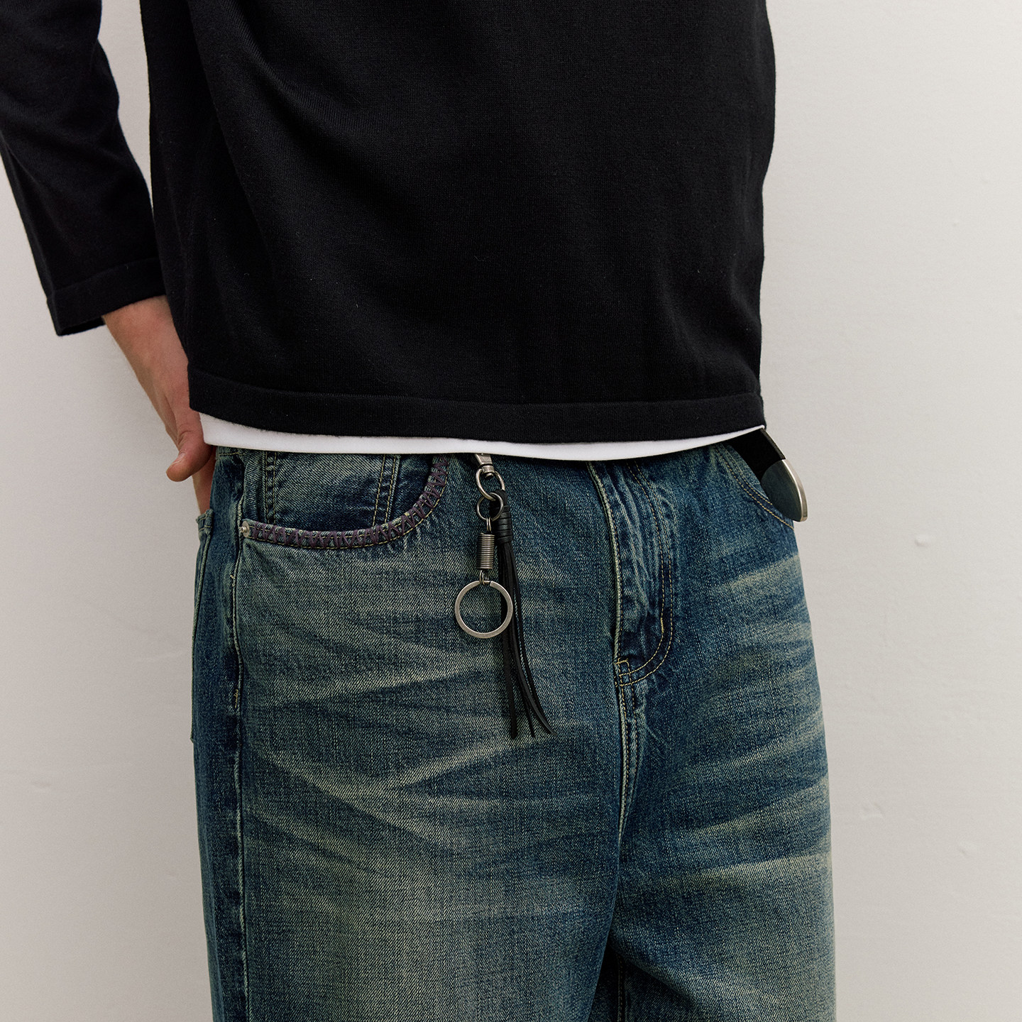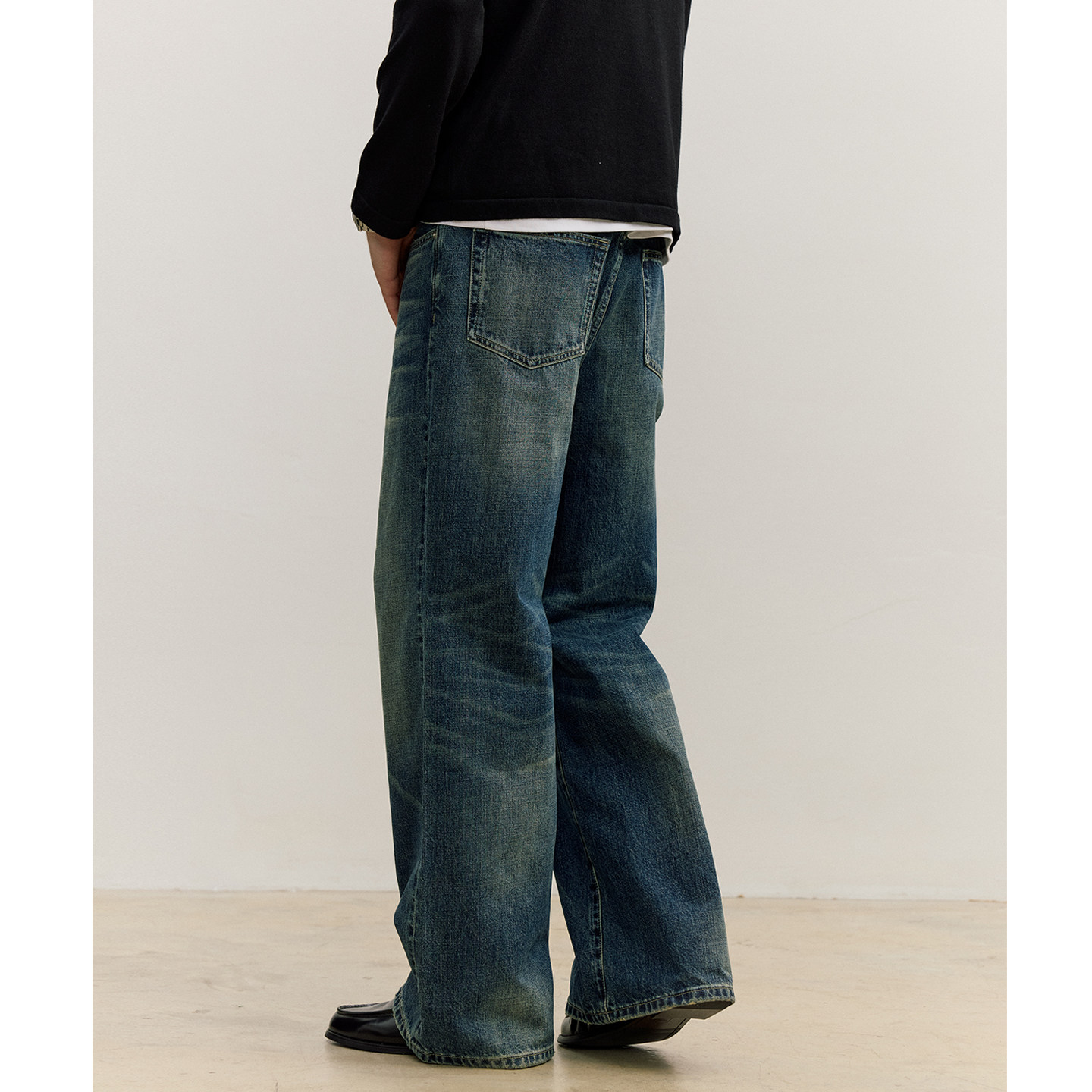 王安宇同款森马牛仔裤男做旧复古阔感弯刀裤宽松弧形裤2025冬新款