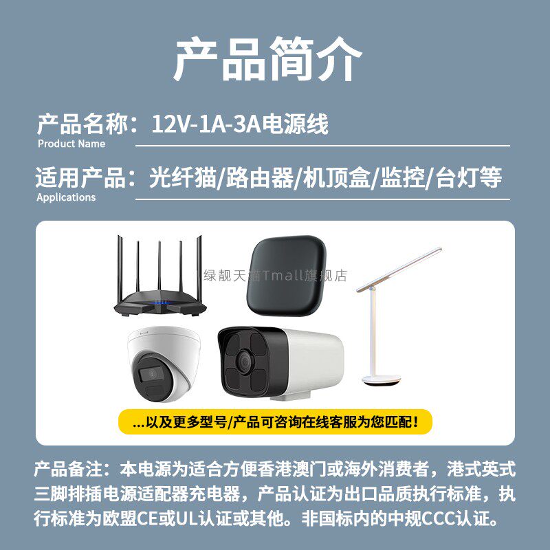 绿靓适用于香港英规12V1A/1.5A/2A/3A英式UK三脚插头光猫路由器摄像头机顶盒LED电源适配器电子琴线变压器
