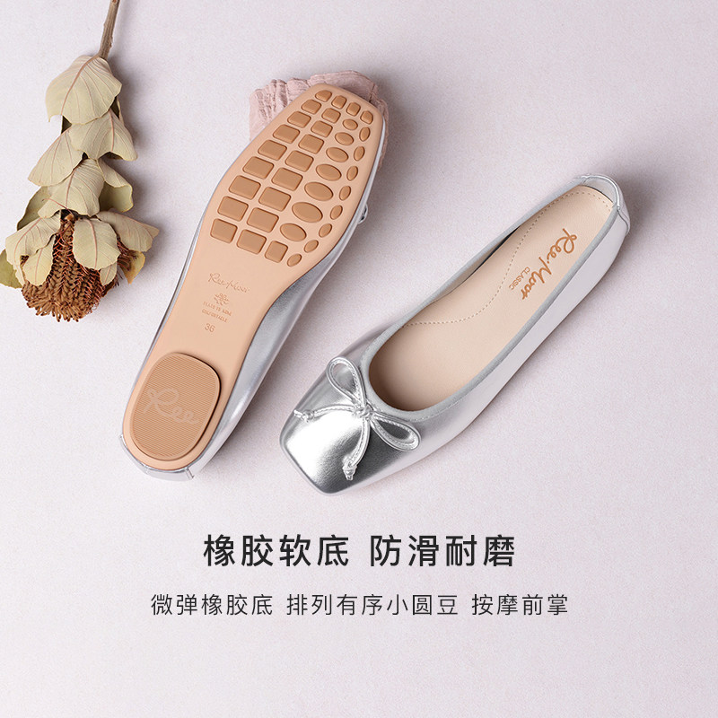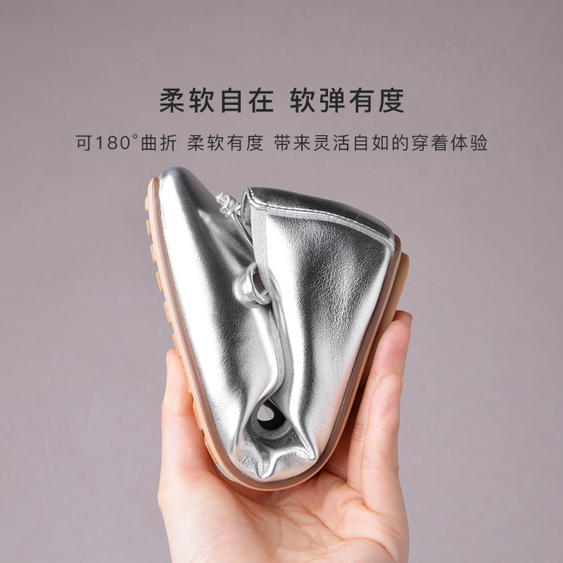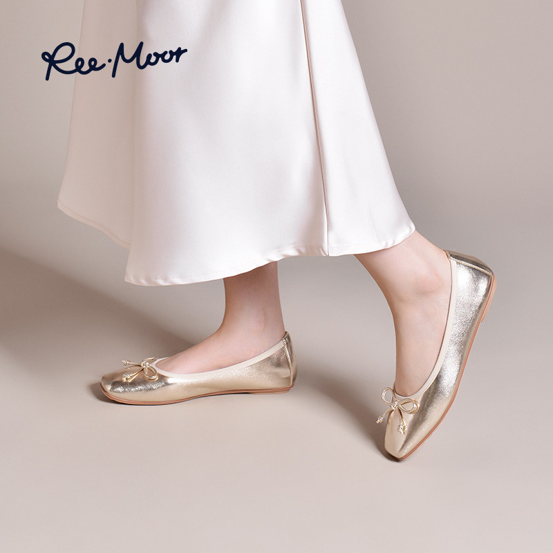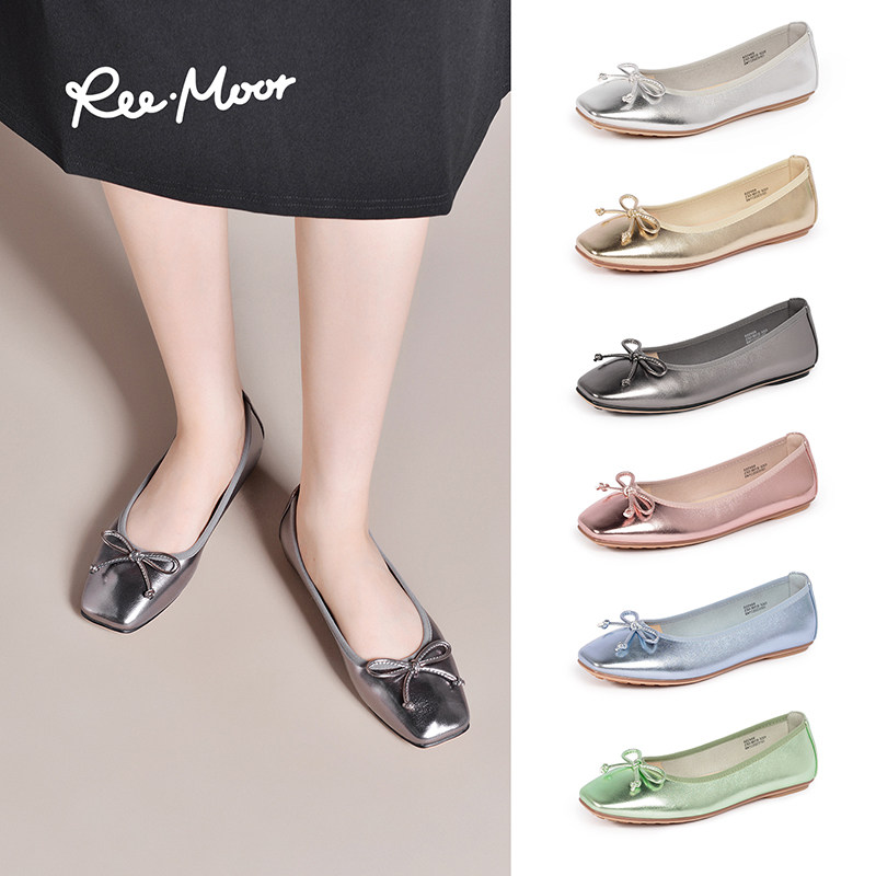 REEMOOR睿慕2026年春季新款舒适软底蛋卷鞋浅口平底银色单鞋女