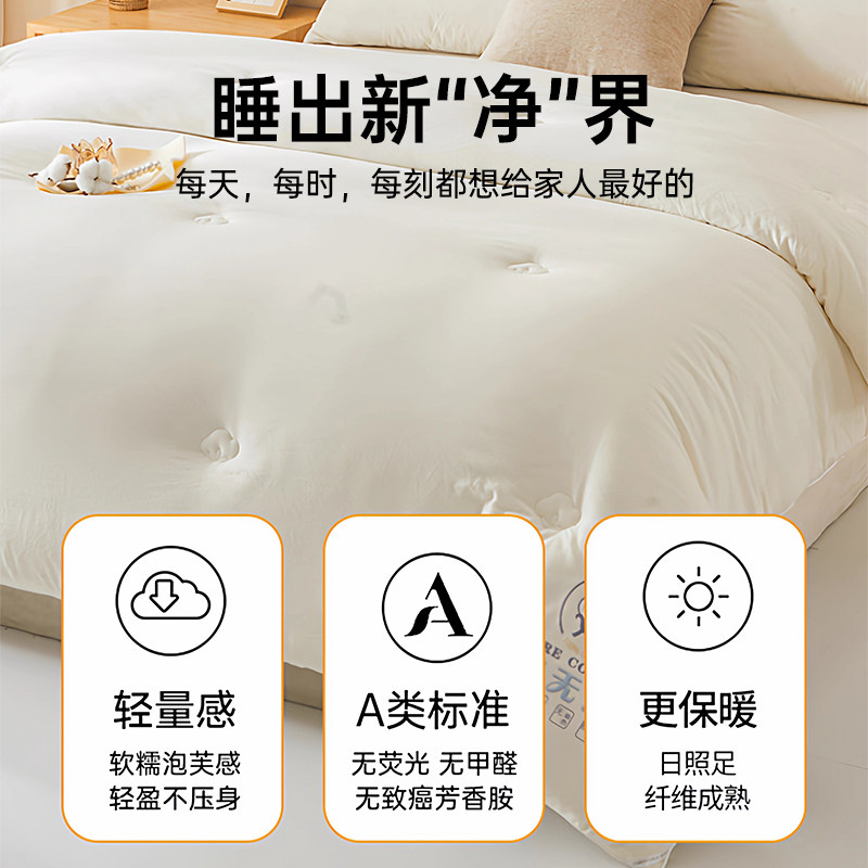 水星家纺棉花被60S长绒棉A类棉被加厚纯棉被子春秋被芯四季被冬被